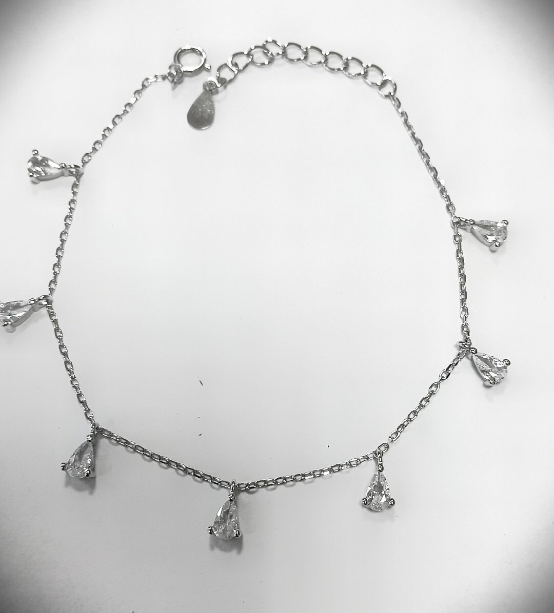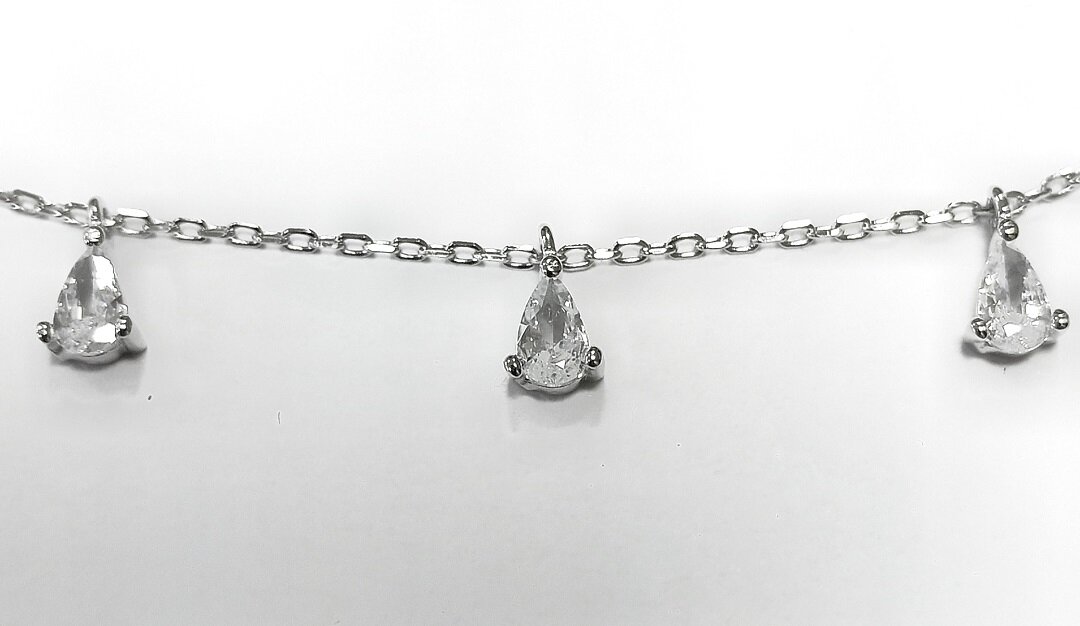 Браслет-цепочка украшен вставками из фианита в форме капли, что придает ему неповторимый блеск и элегантность. Толщина цепочки составляет 1.0 мм, что делает украшение стильным и заметным, но при этом не утяжеляет образ.