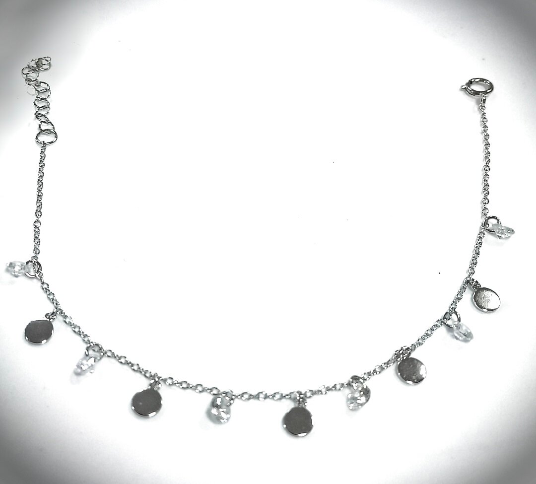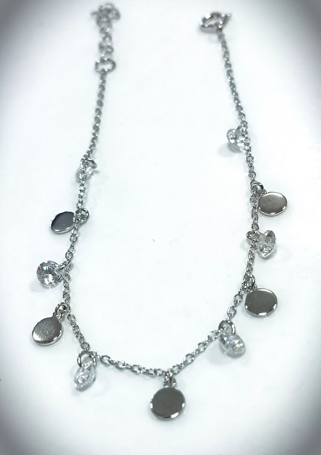 Вставка из фианита в форме круга придает украшению блеск и элегантность. Толщина цепочки составляет 1.0 мм, что делает браслет комфортным для ношения на руке.
