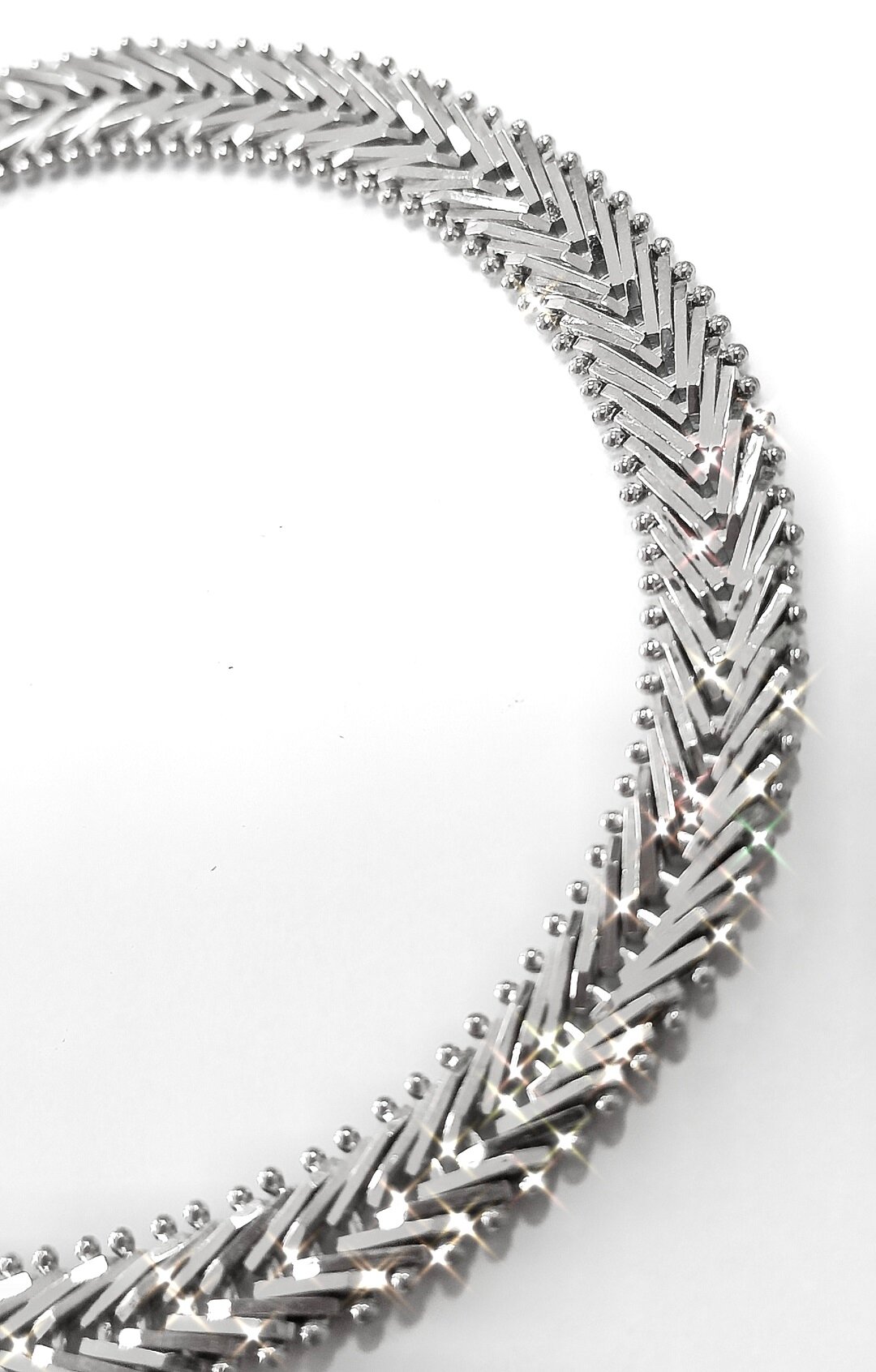 Браслет украшен родированием, что придает ему дополнительный блеск и защищает от царапин и потертостей.