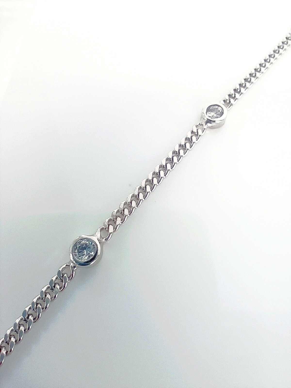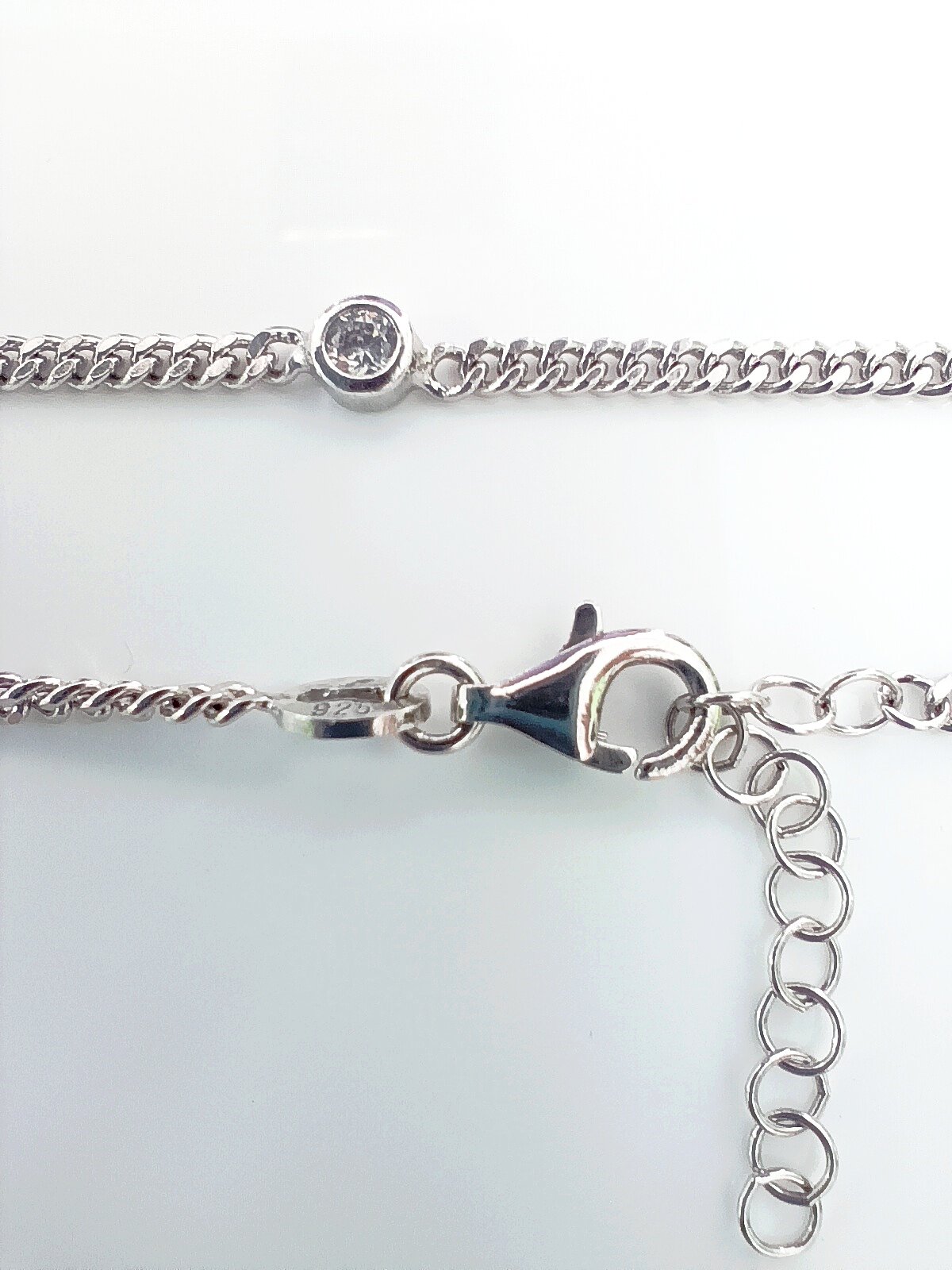 Браслет(анклет) выполнен в виде цепочки с плетением "панцирь" и геометрической тематикой. Белый цвет вставки из циркона придает украшению изысканный вид.