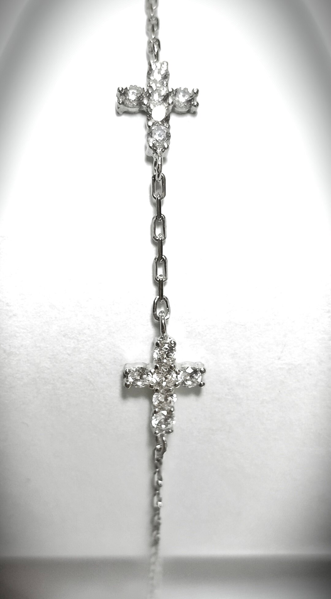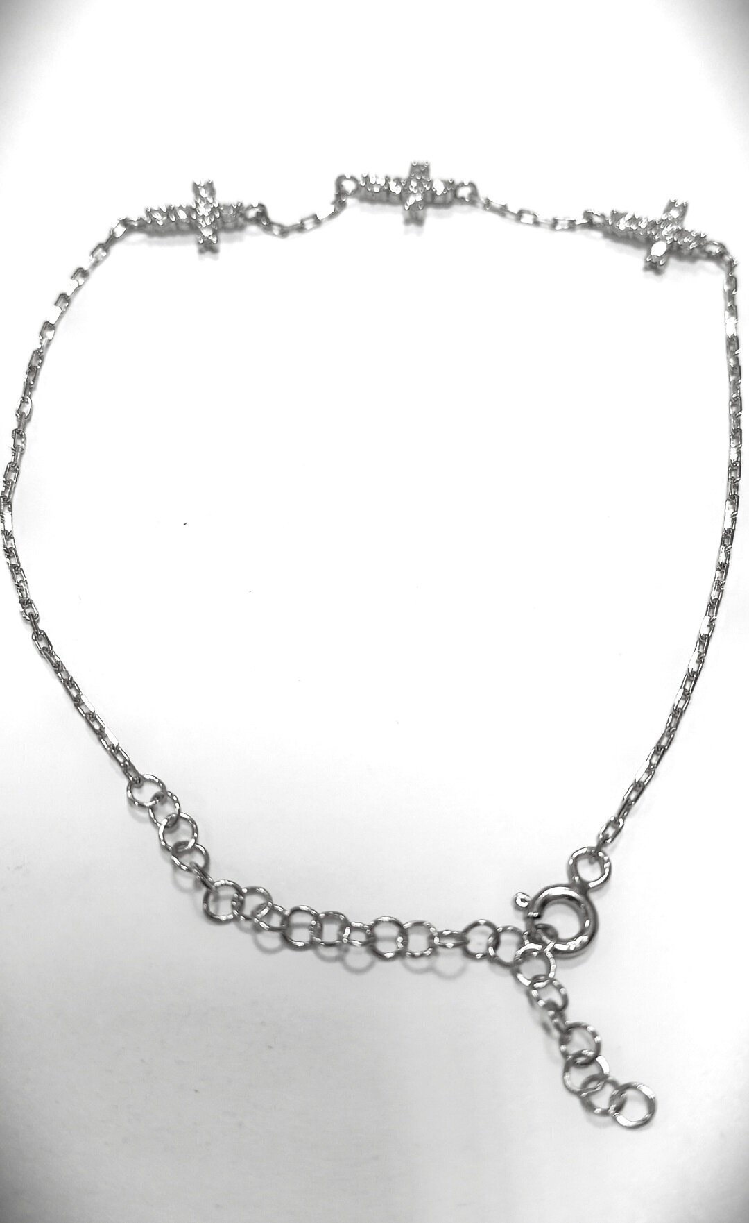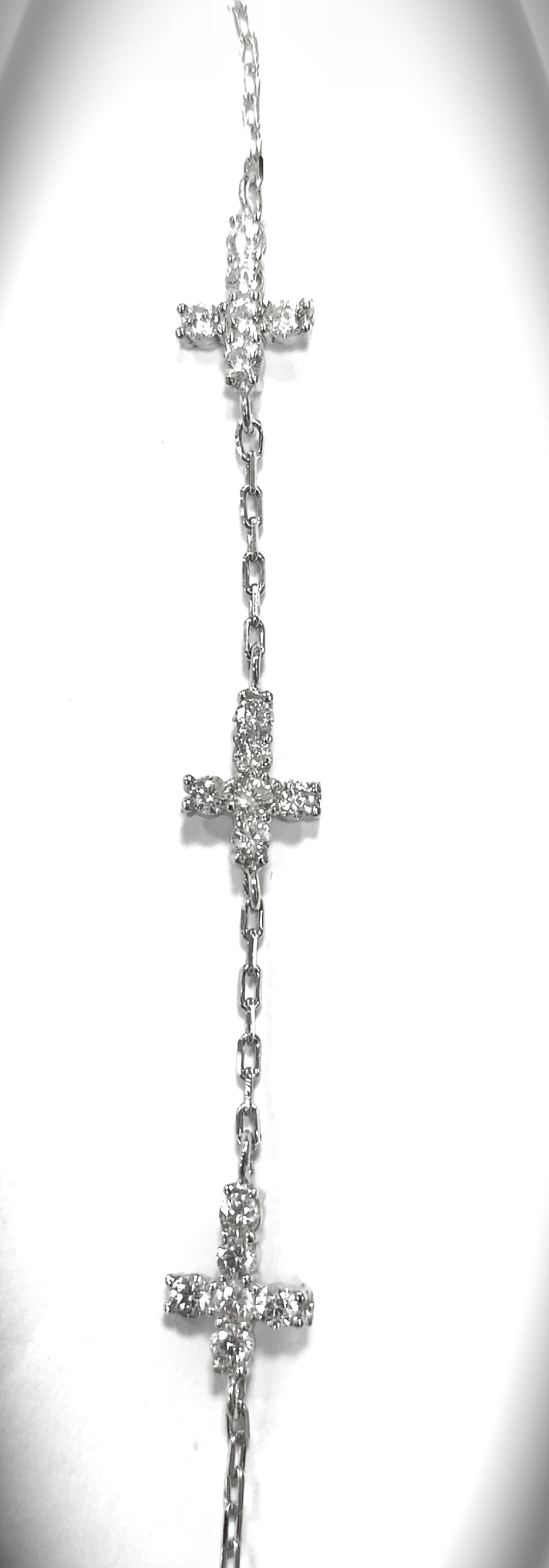 Особенностью браслета является его дизайн. Он украшен тремя крестиками с вставками из фианита, что придает ему неповторимый и оригинальный вид. Камни фианит, используемые в браслете, придают ему блеск и сияние, делая его еще более привлекательным.