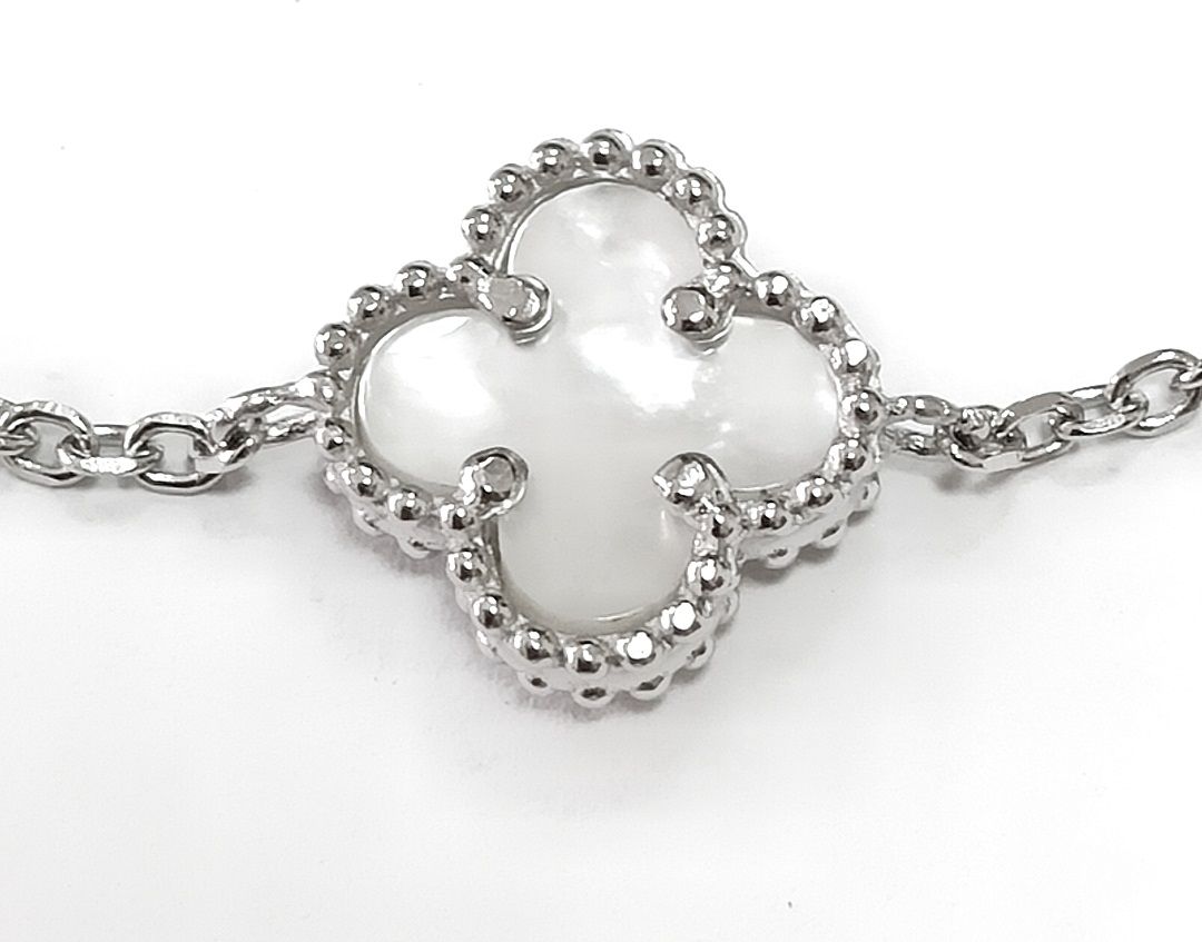 Отделка браслета выполнена методом родирования, что придает украшению блеск и защищает его от царапин и потертостей. Вставка из перламутра добавляет изысканности и шарма браслету, делая его неповторимым и уникальным.