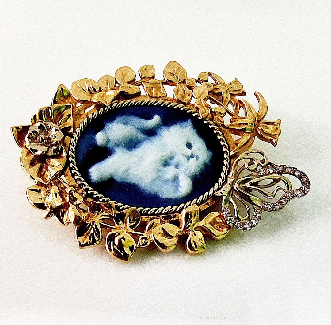 Брошь Эстерелла золото 750, агат, бриллианты розовые