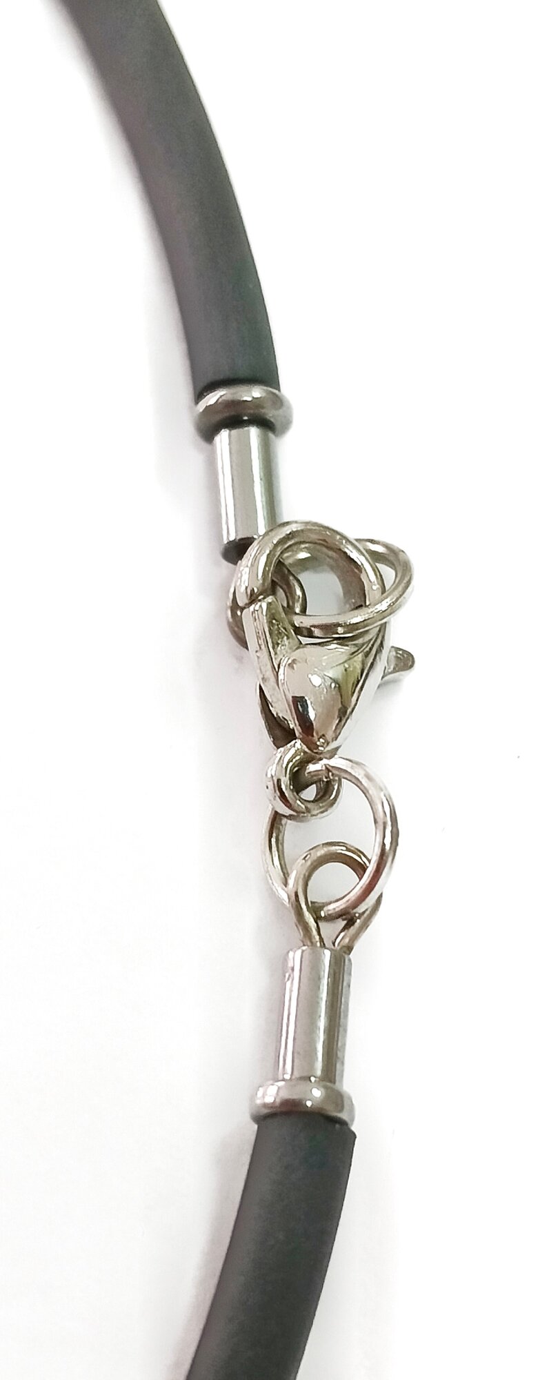 Материал изготовления - каучук, который обеспечивает долговечность и комфорт при носке. Благодаря этому материалу, чокер не вызывает раздражения и аллергии, что делает его безопасным для ежедневного использования.