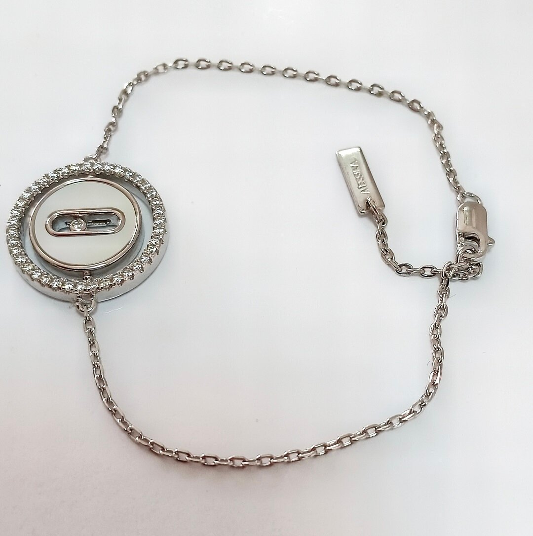 Браслет украшен вставками из перламутра и фианита, что придает ему особый шарм и блеск. Вставки выполнены в форме круга, что делает украшение еще более привлекательным.