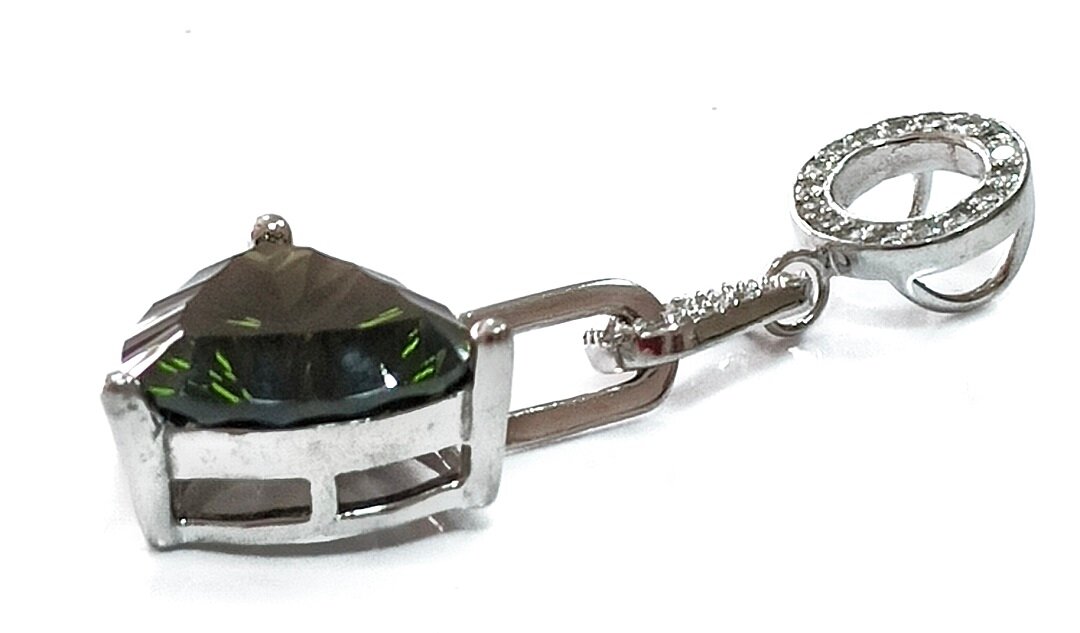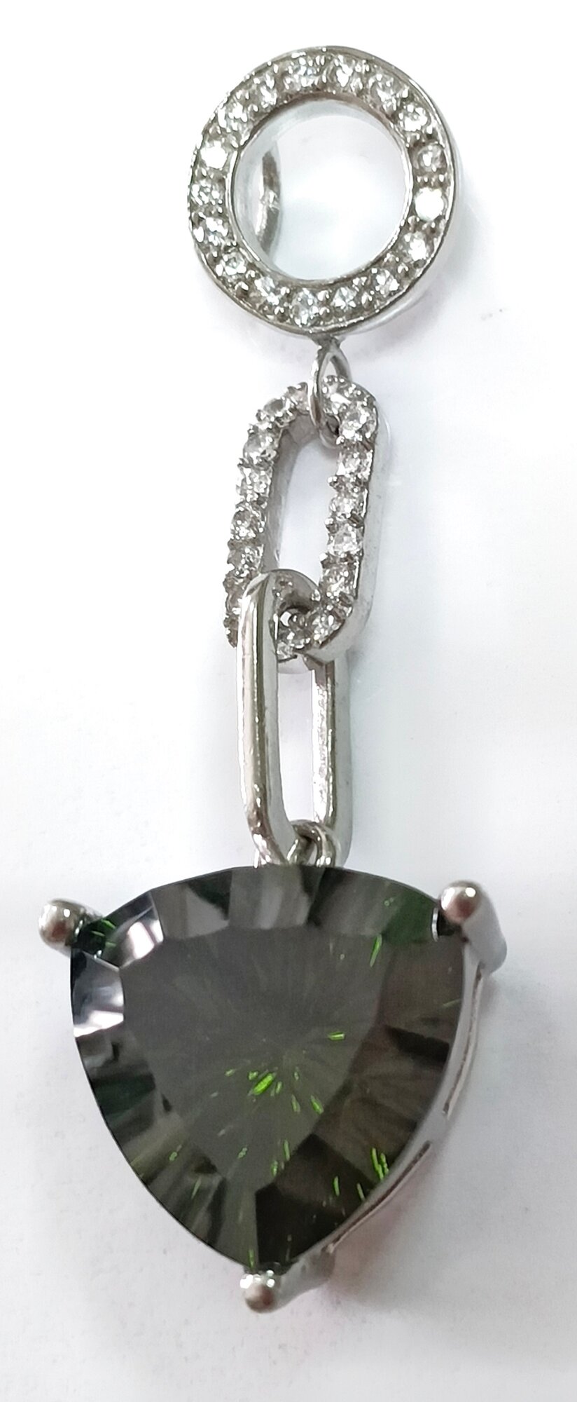 Подвеска украшена фианитом, который придает изделию блеск и сияние. Фианит - это синтетический камень, который по своим свойствам не уступает природному бриллианту.