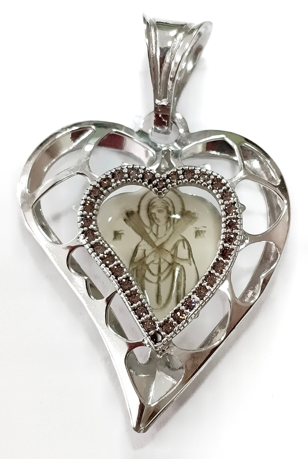 Подвеска выполнена в форме иконки с изображением семистрельной, что делает ее прекрасным православным украшением. Вставка из эмали и фианита придает изделию особый шарм и блеск.