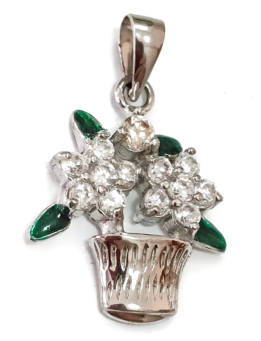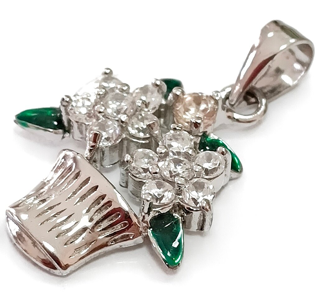 Подвеска украшена двумя видами вставок - зеленой эмалью и фианитами. Эмаль придает украшению неповторимый блеск и глубину, а фианиты добавляют изделию изысканности и блеска.