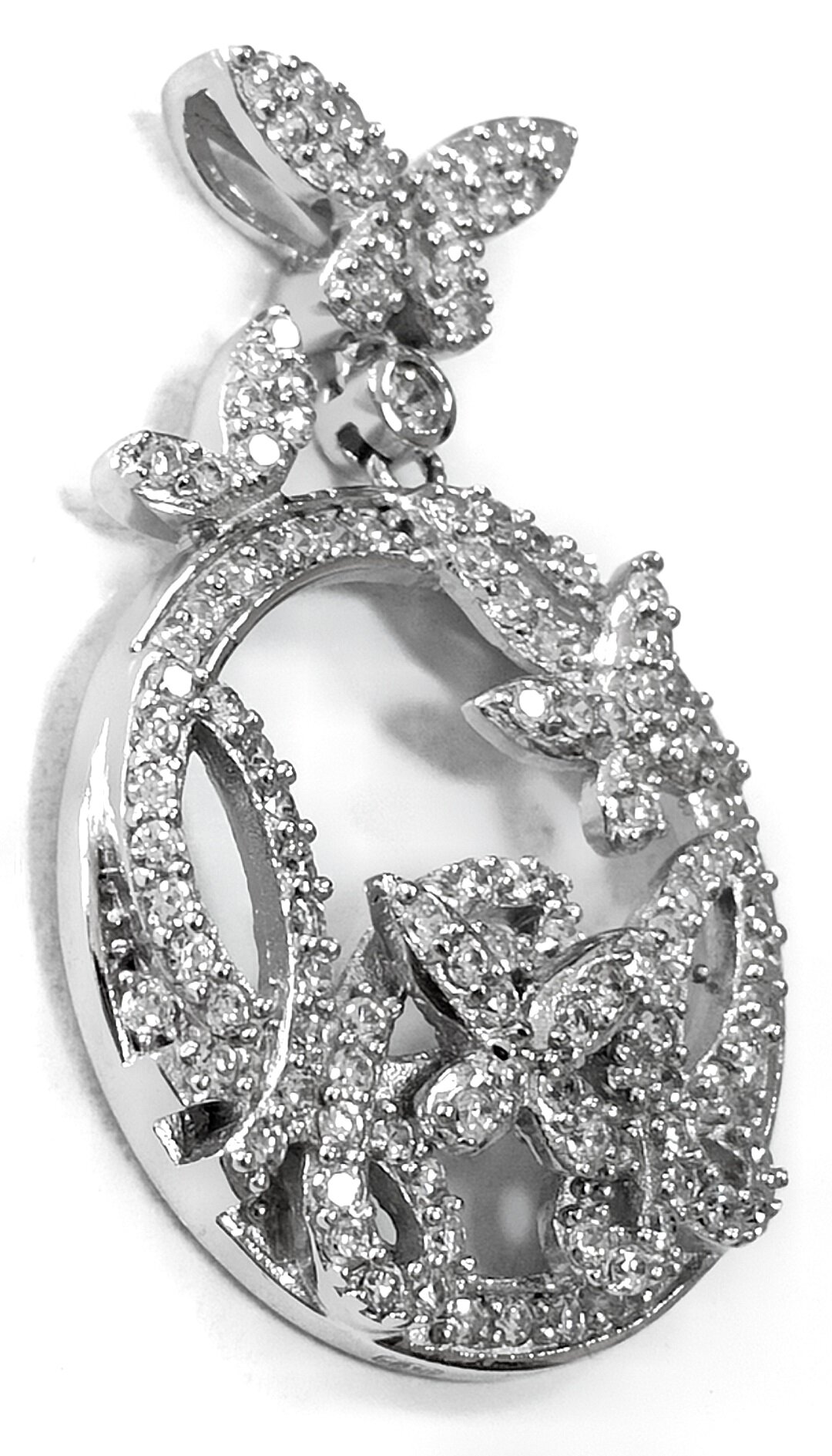 Подвеска украшена вставкой из фианита, что придает ей особый блеск и сияние. Фианит - это синтетический камень, который по своим оптическим свойствам не уступает бриллианту.
