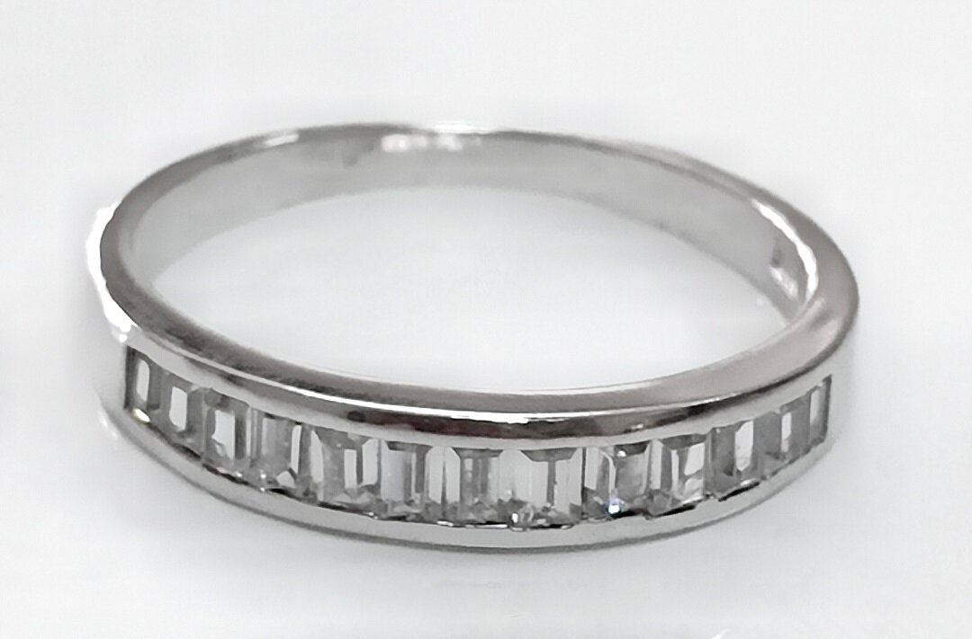 Особенностью кольца является вставка из фианита в форме багета. Фианит - это синтетический камень, который по своим свойствам не уступает природному бриллианту, но при этом имеет более доступную цену.