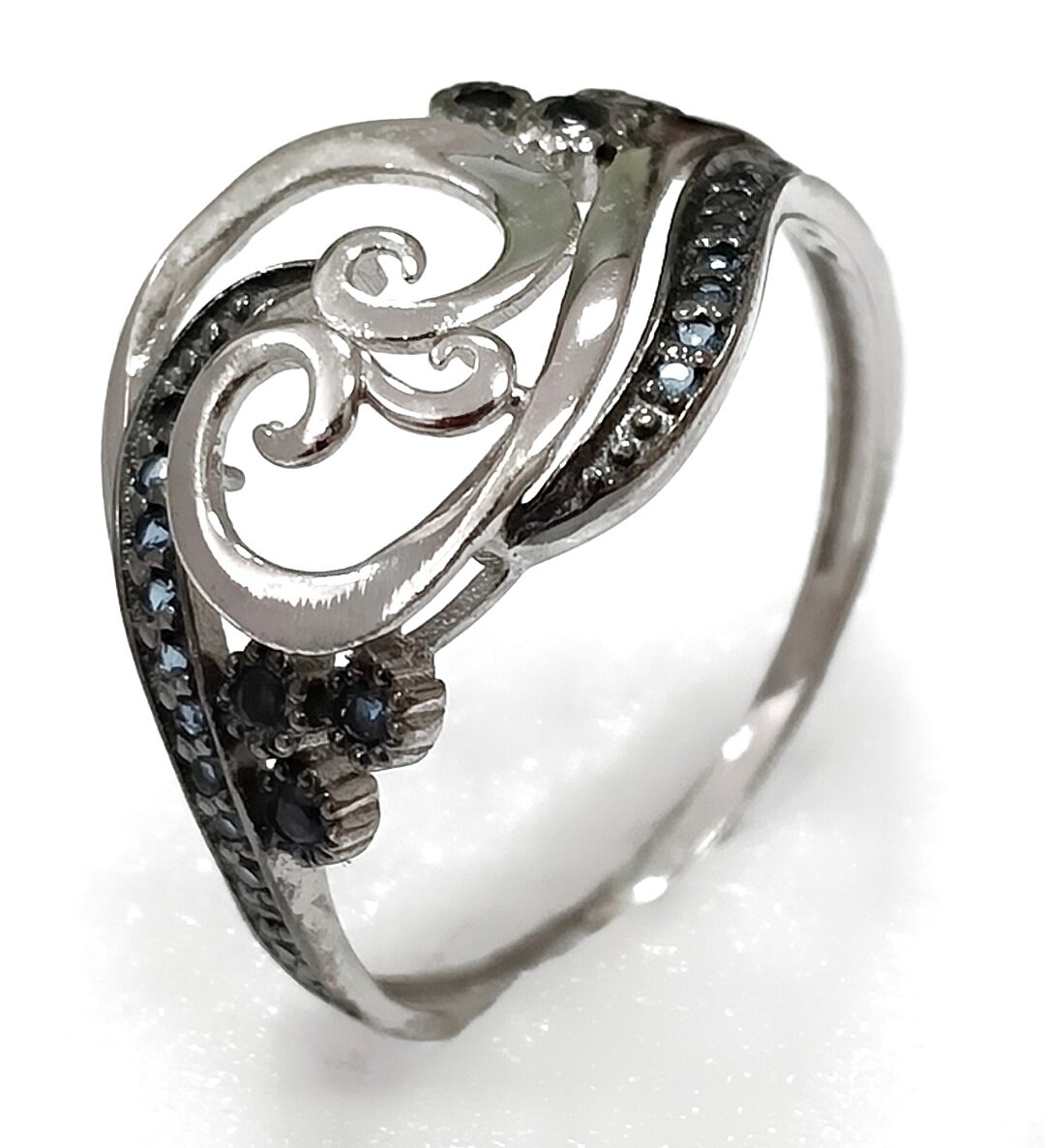 Отделка кольца - родирование. Родирование - это процесс покрытия изделия тонким слоем родия, что придает ему блеск и защищает от царапин и потускнения.
