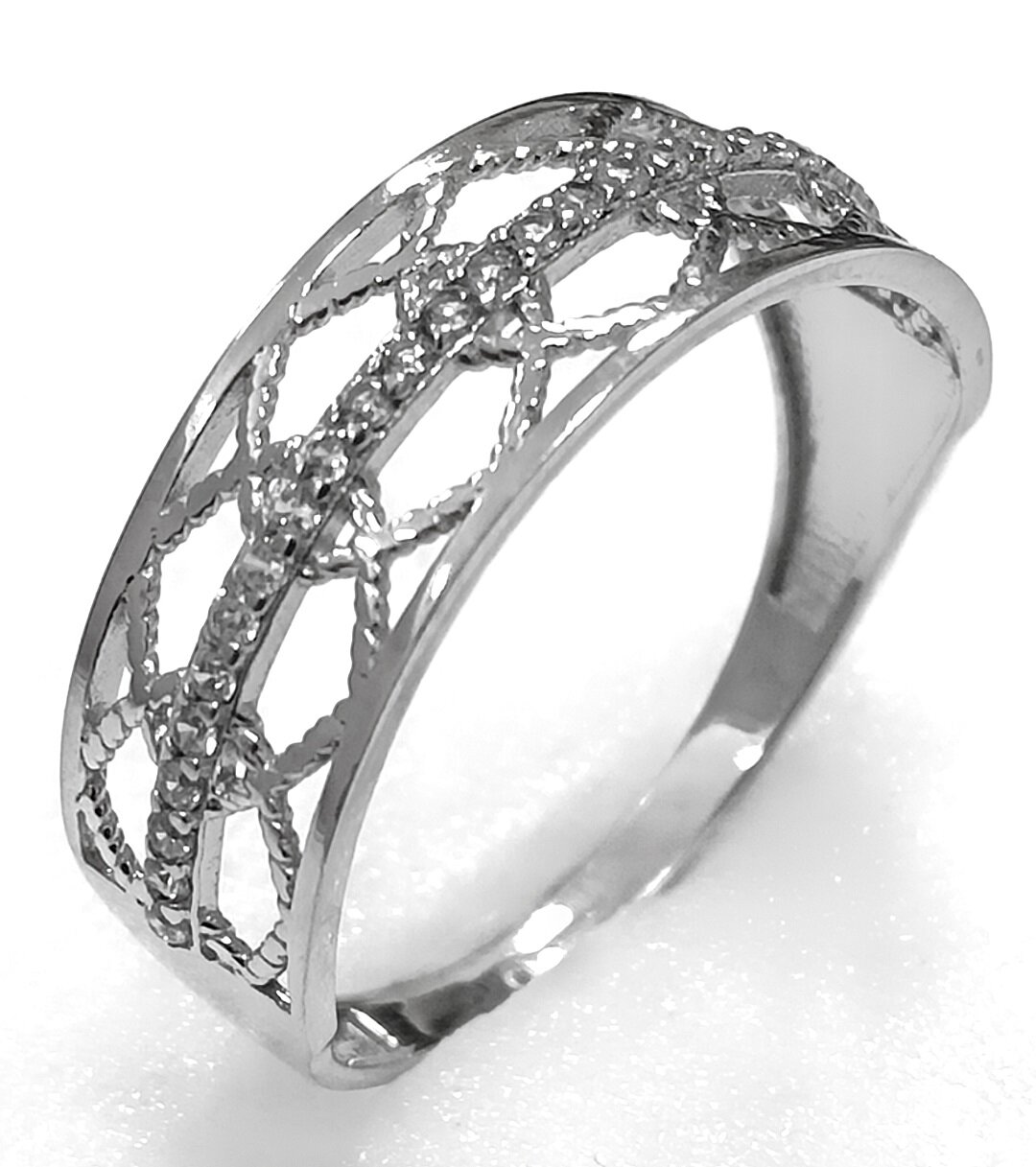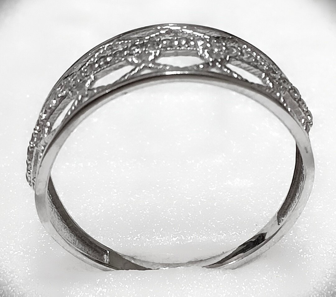Отделка кольца родированием придает ему дополнительный блеск и защиту от царапин и потертостей.