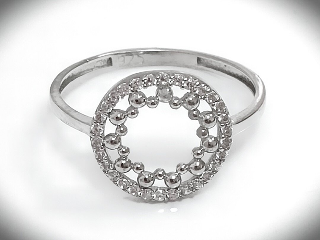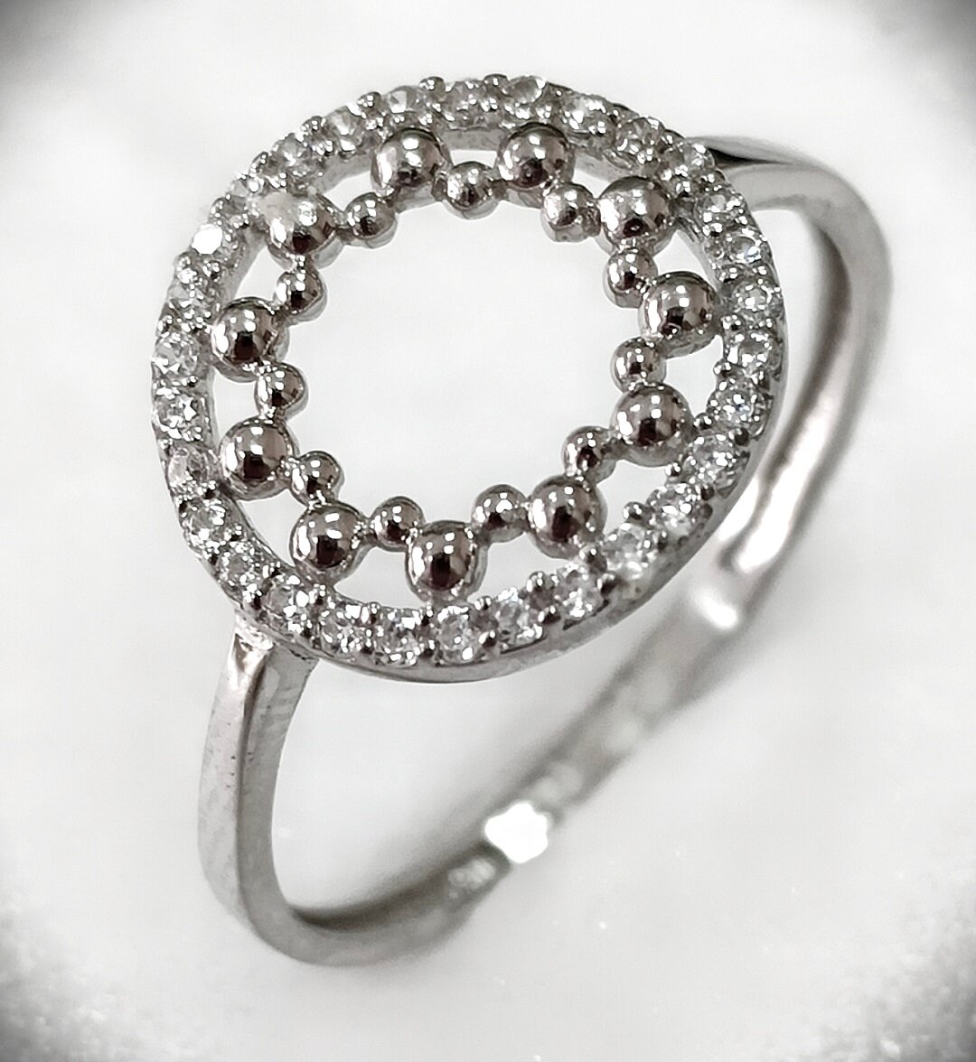 Вставка из фианита придает кольцу блеск и сияние. Фианит - это синтетический камень, который по своим оптическим свойствам не уступает бриллианту. Форма вставки - круг, что придает украшению утонченность и элегантность.