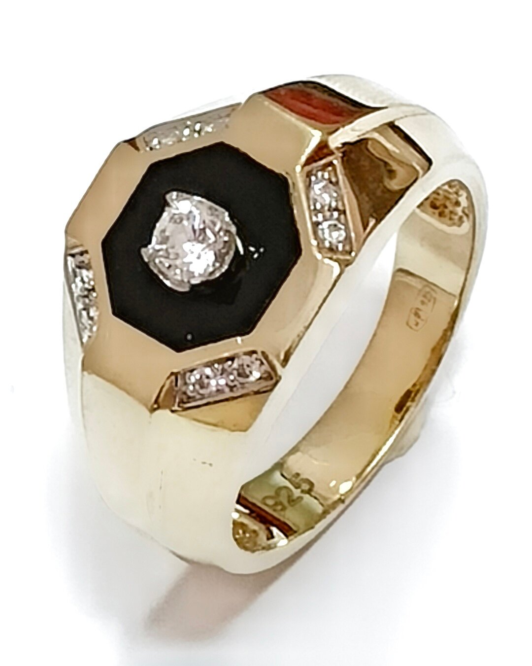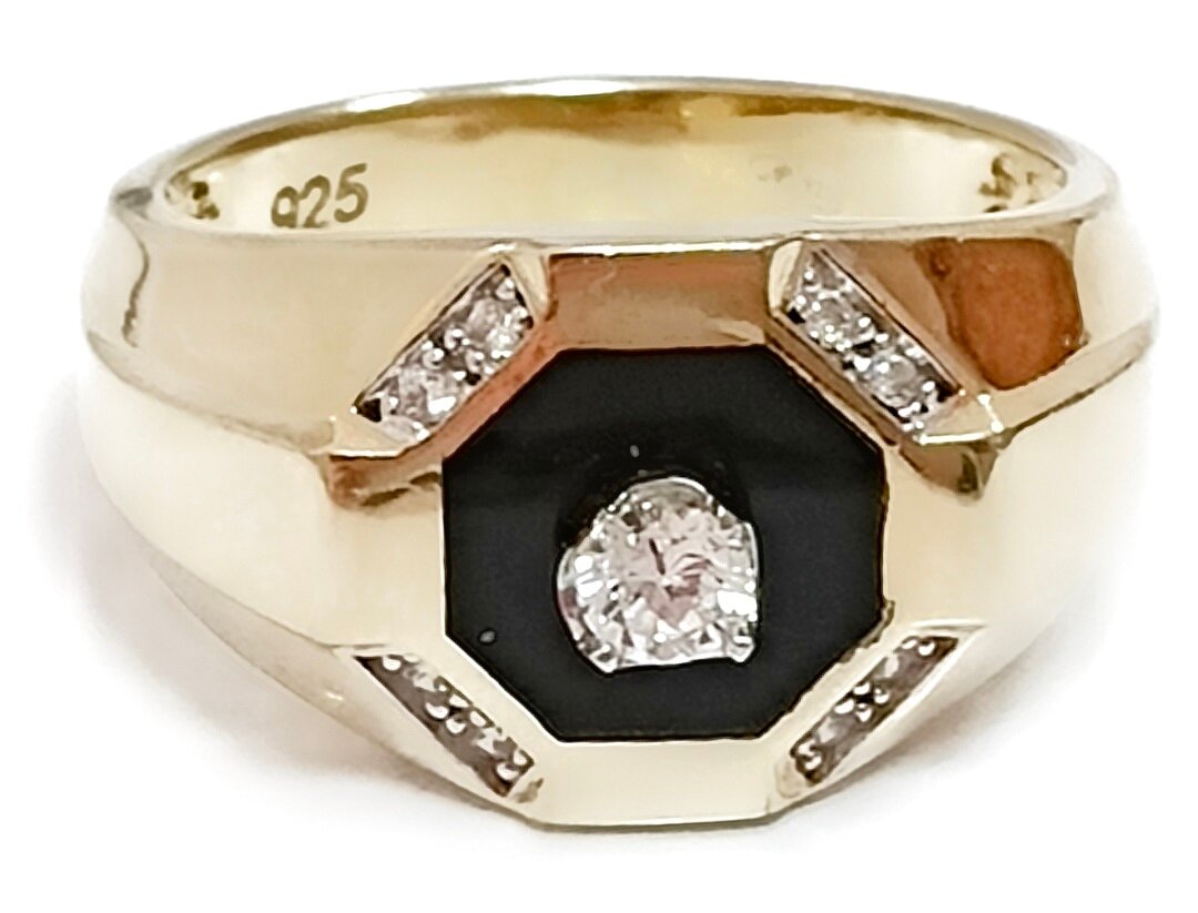 Вставка из оникса и фианита придает кольцу особый шарм и блеск. Оникс - это камень, который известен своими магическими свойствами и считается символом власти и силы. Фианит - это искусственный камень, который по своим оптическим свойствам не уступает бриллианту.