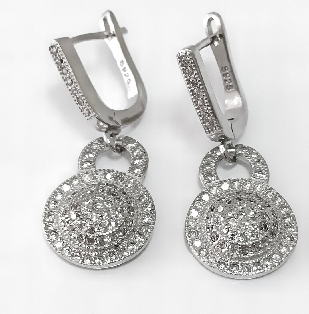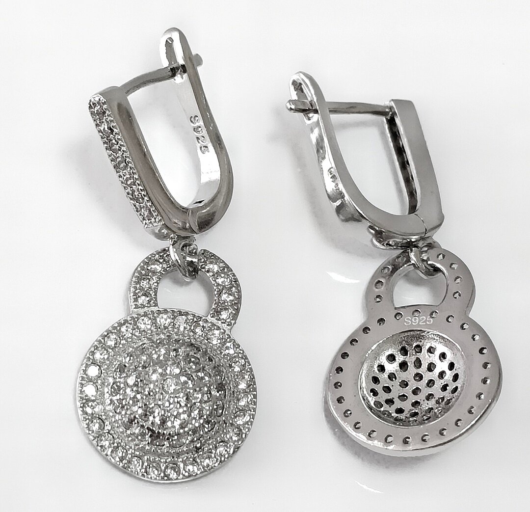 Серьги выполнены из серебра 925 пробы, что гарантирует высокое качество и долговечность изделия. Отделка серег - родирование, что придает им блеск и защищает от царапин и потертостей.