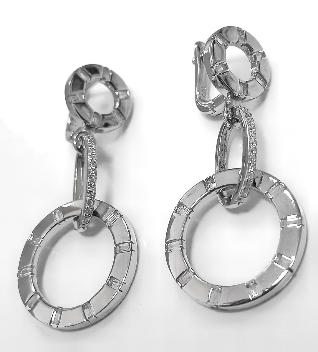 Серьги выполнены из серебра 925 пробы, что гарантирует высокое качество и долговечность изделия. Отделка серег - родирование, что придает им блеск и защищает от царапин и потертостей.
