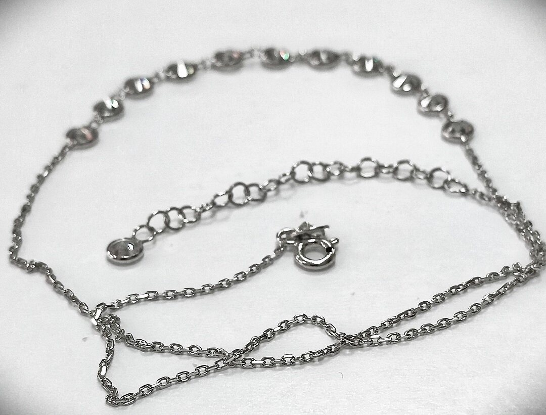Колье выполнено из серебра 925 пробы, что гарантирует его высокое качество и долговечность. Отделка родированием придает украшению блеск и защищает его от царапин и потертостей.