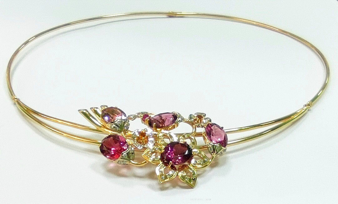 Совершенная огранка турмалинов, жёлто- оранжевые сапфиры, качественные природные бриллианты,