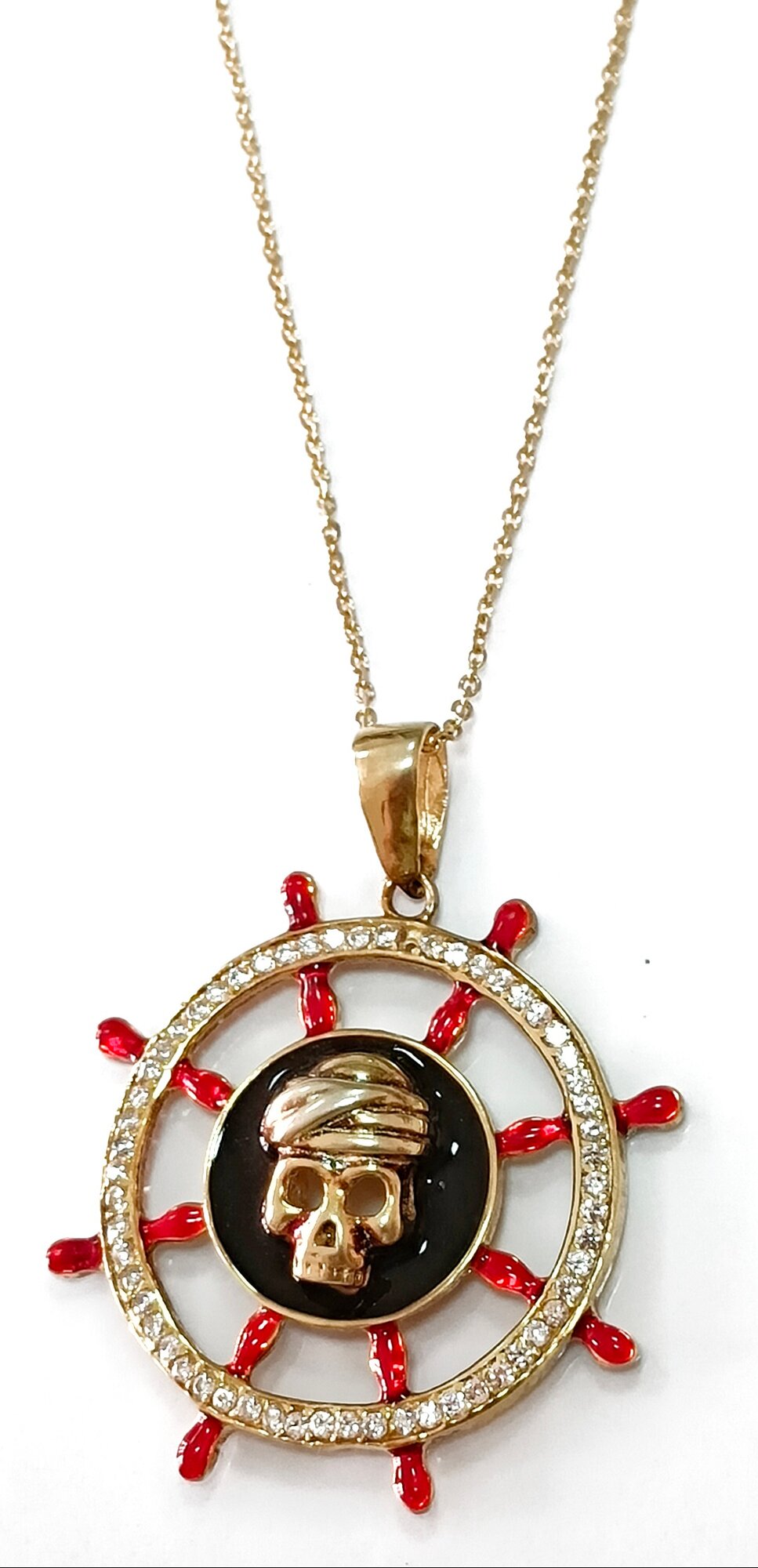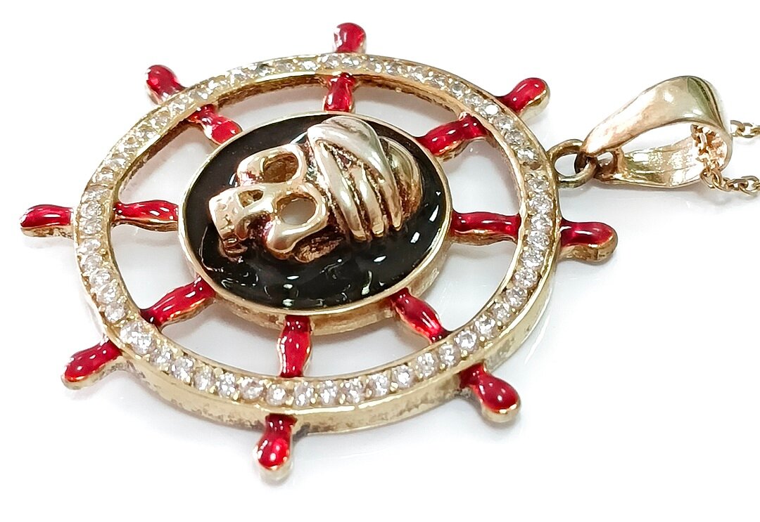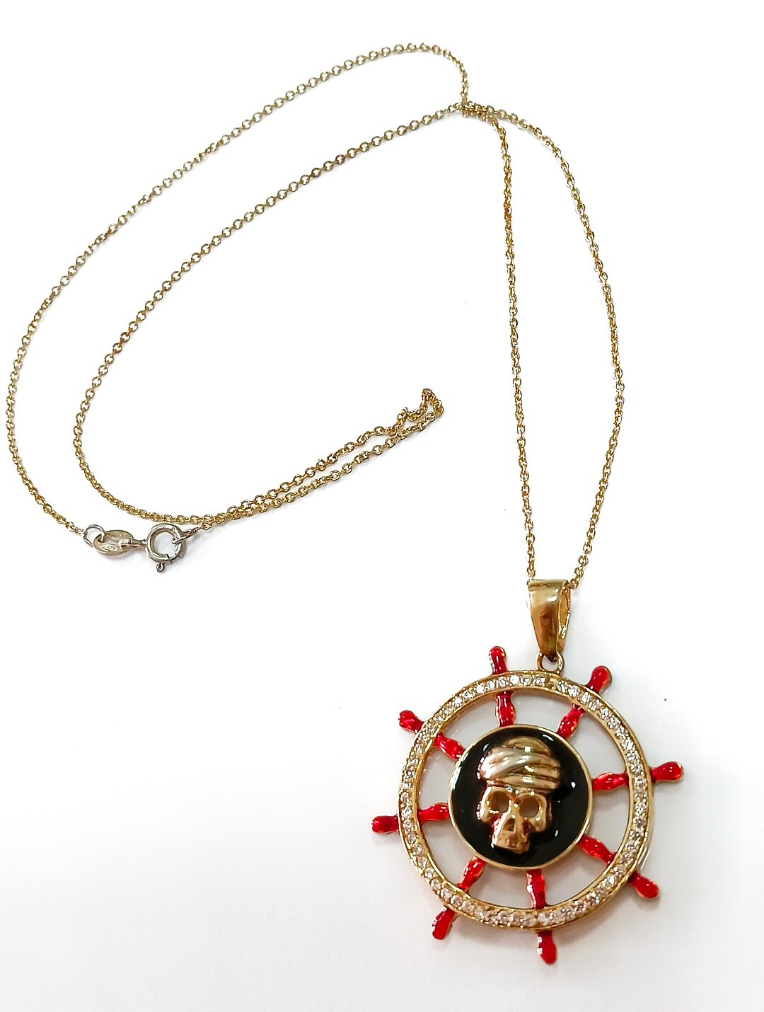 Дизайн колье выполнен в тематике моря, что придает ему особый шарм и уникальность. Красная и черная эмаль, а также фианиты, вставленные в украшение, добавляют ему блеска и роскоши.