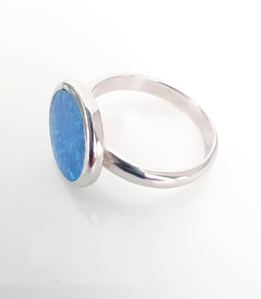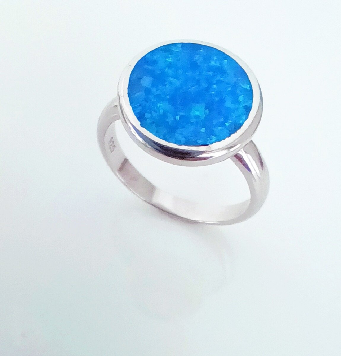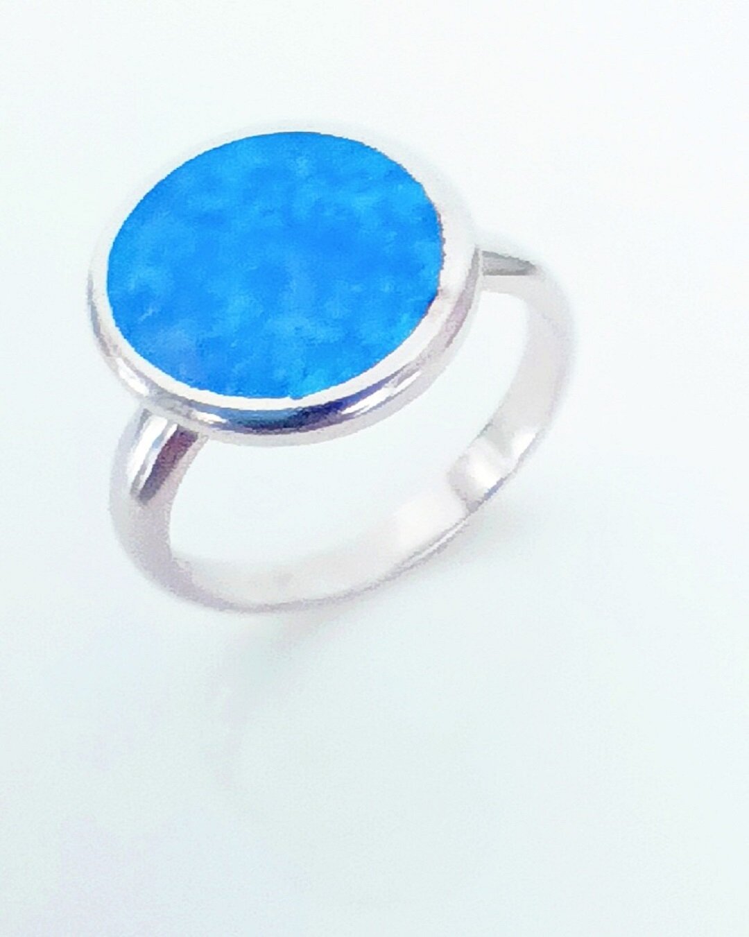 Вставка из синтетического опала в форме круга и мультиколорной окраской создает яркий и стильный акцент.
