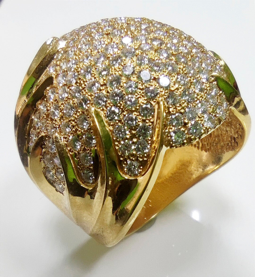 Кольцо 750 пробы, с бриллиантами, ручного изготовления. Идеально подобранные камни.