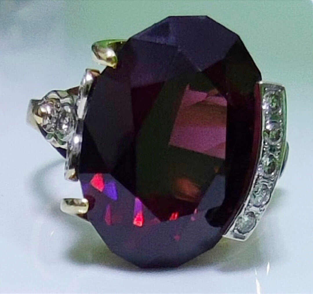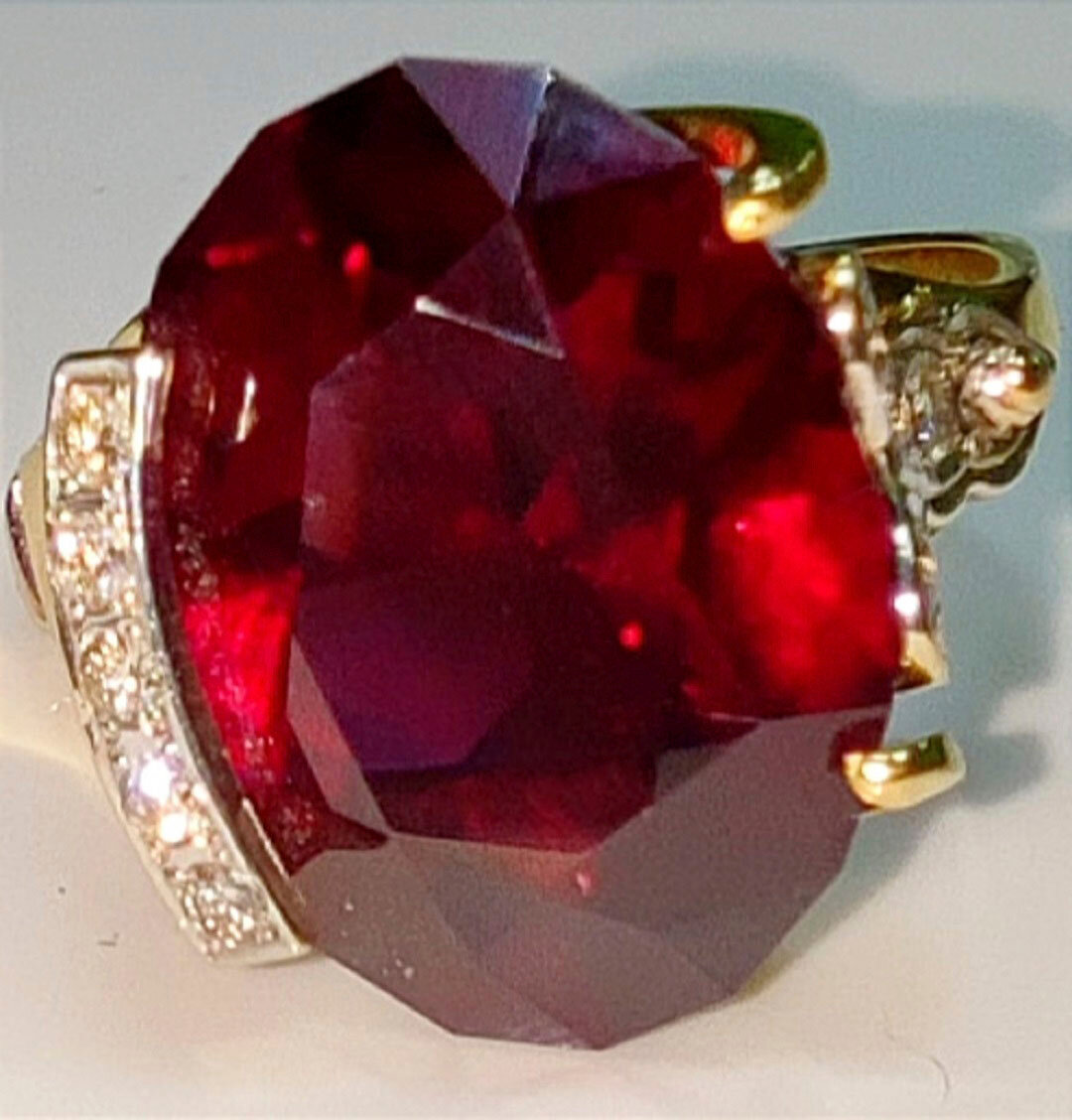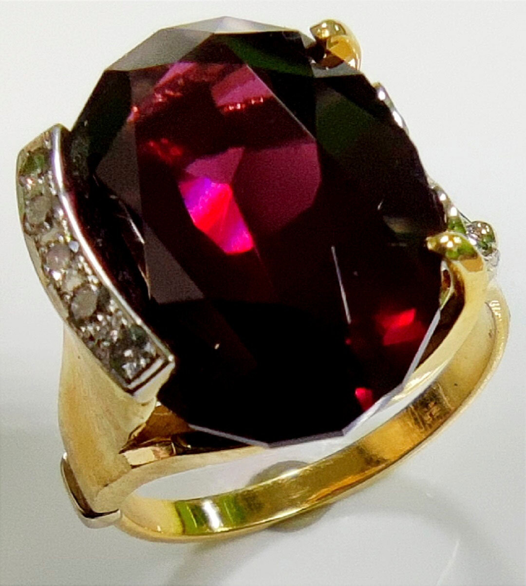 Колбцо ручного изготовления из золота 750 пробы с исключительной чистоты родолитом и бриллиантами