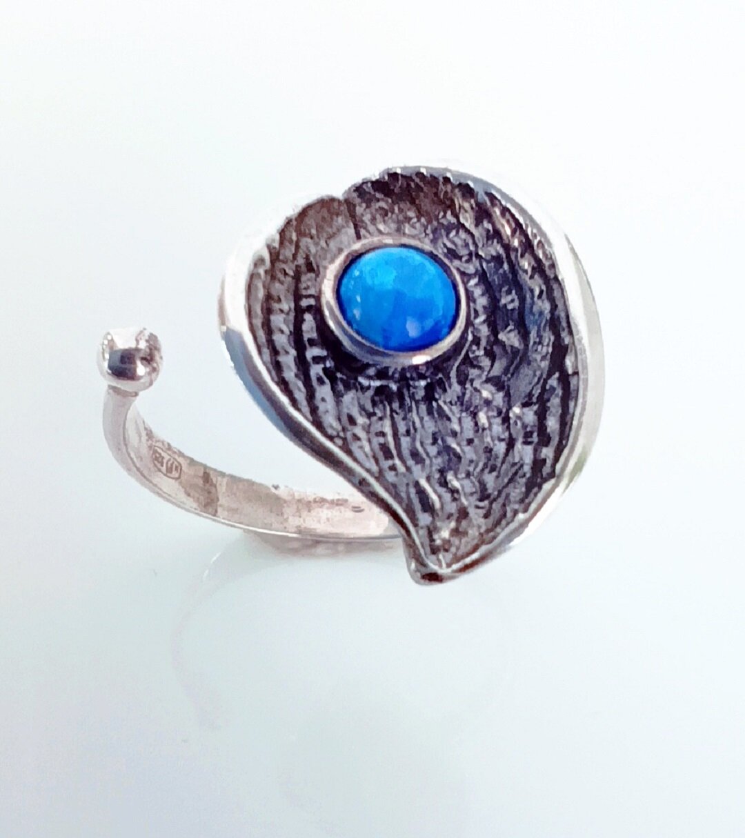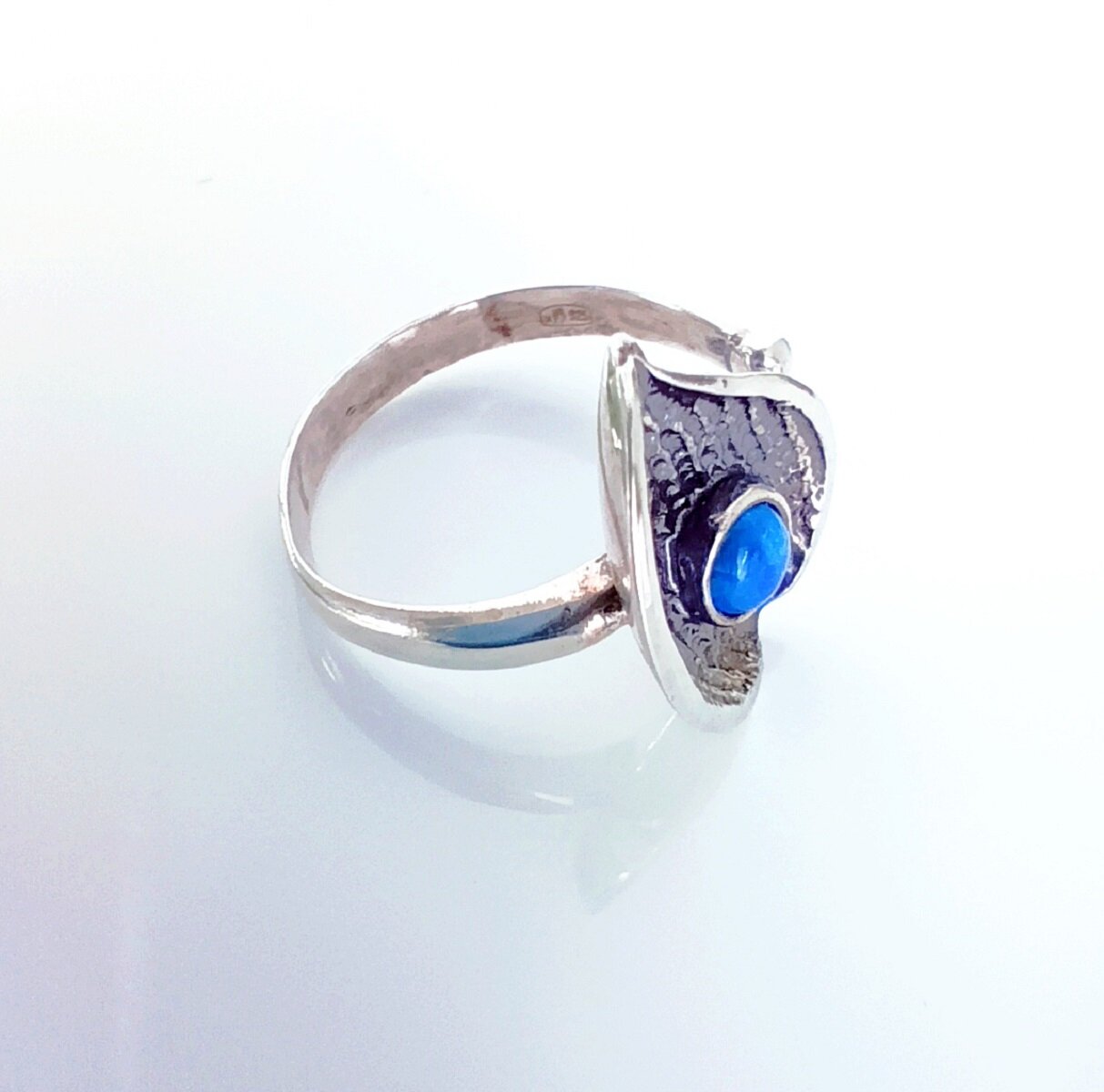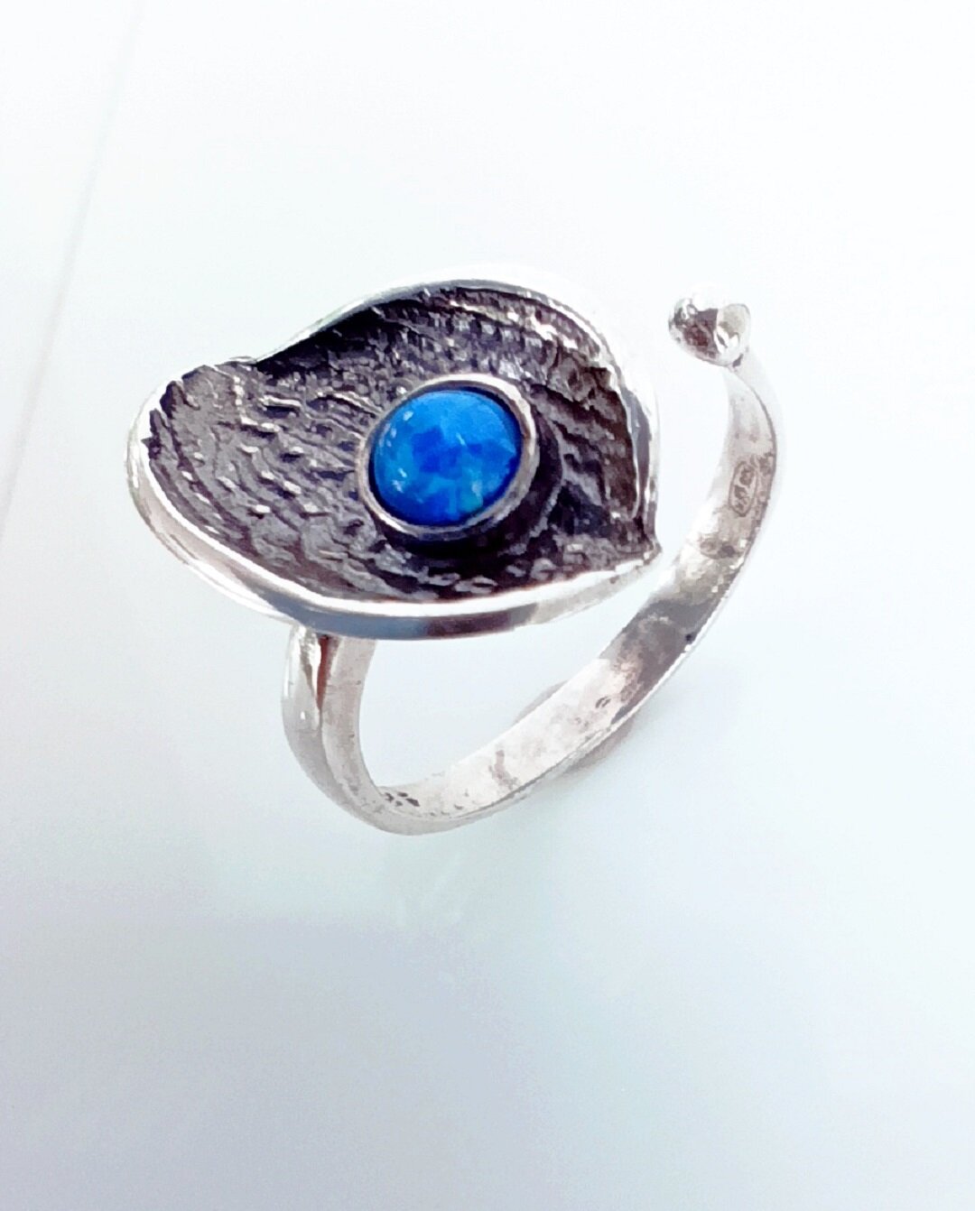 Вставка из синтетического опала придает кольцу неповторимый шарм и изысканность. Опал имеет радужную поверхность, которая переливается различными узорами при наклонах камня и очертаниями. Благодаря этому, украшение всегда будет выглядеть необычно и привлекать внимание.