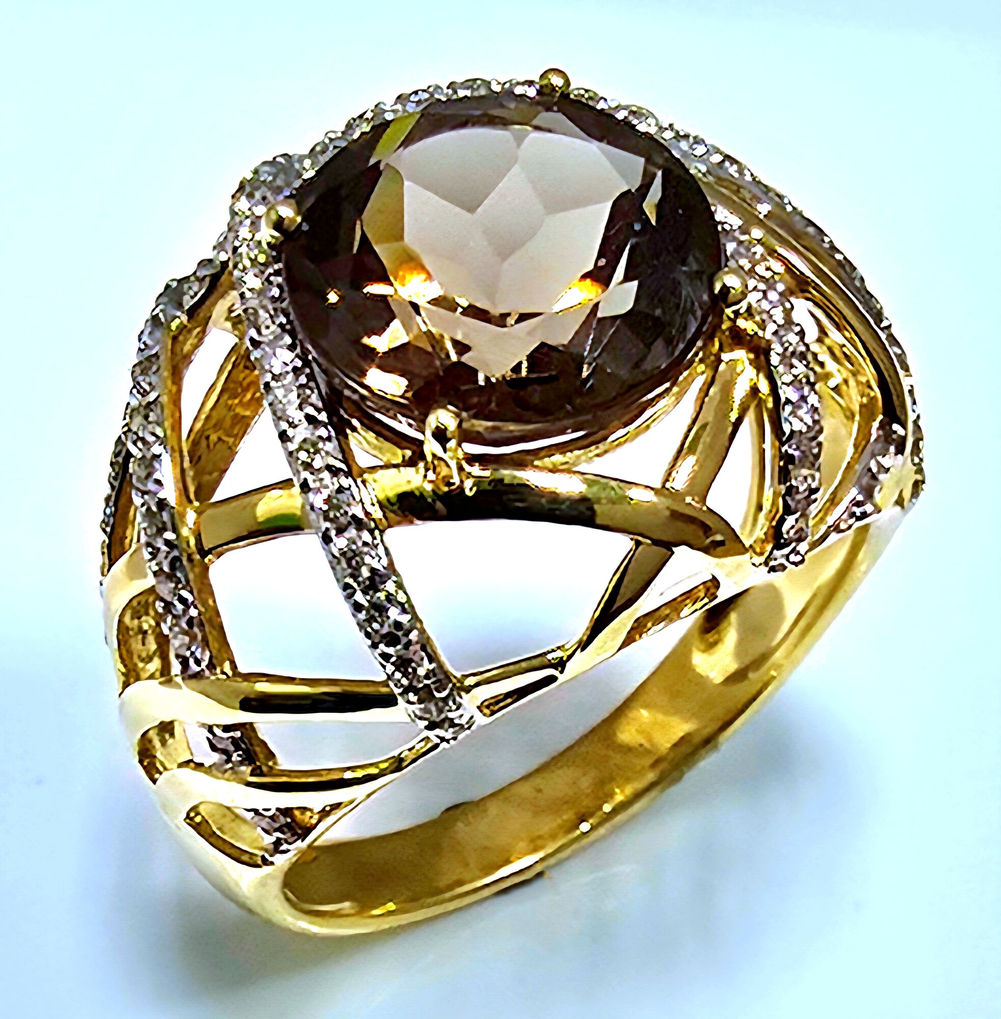 Кольцо Эстерелла золото 585 бриллианты, раух топаз - это изысканное ювелирное изделие, которое станет прекрасным дополнением к вашему образу. Изготовленное из золота 585 пробы, оно обладает высокой прочностью и долговечностью, что гарантирует его сохранность на протяжении многих лет.
