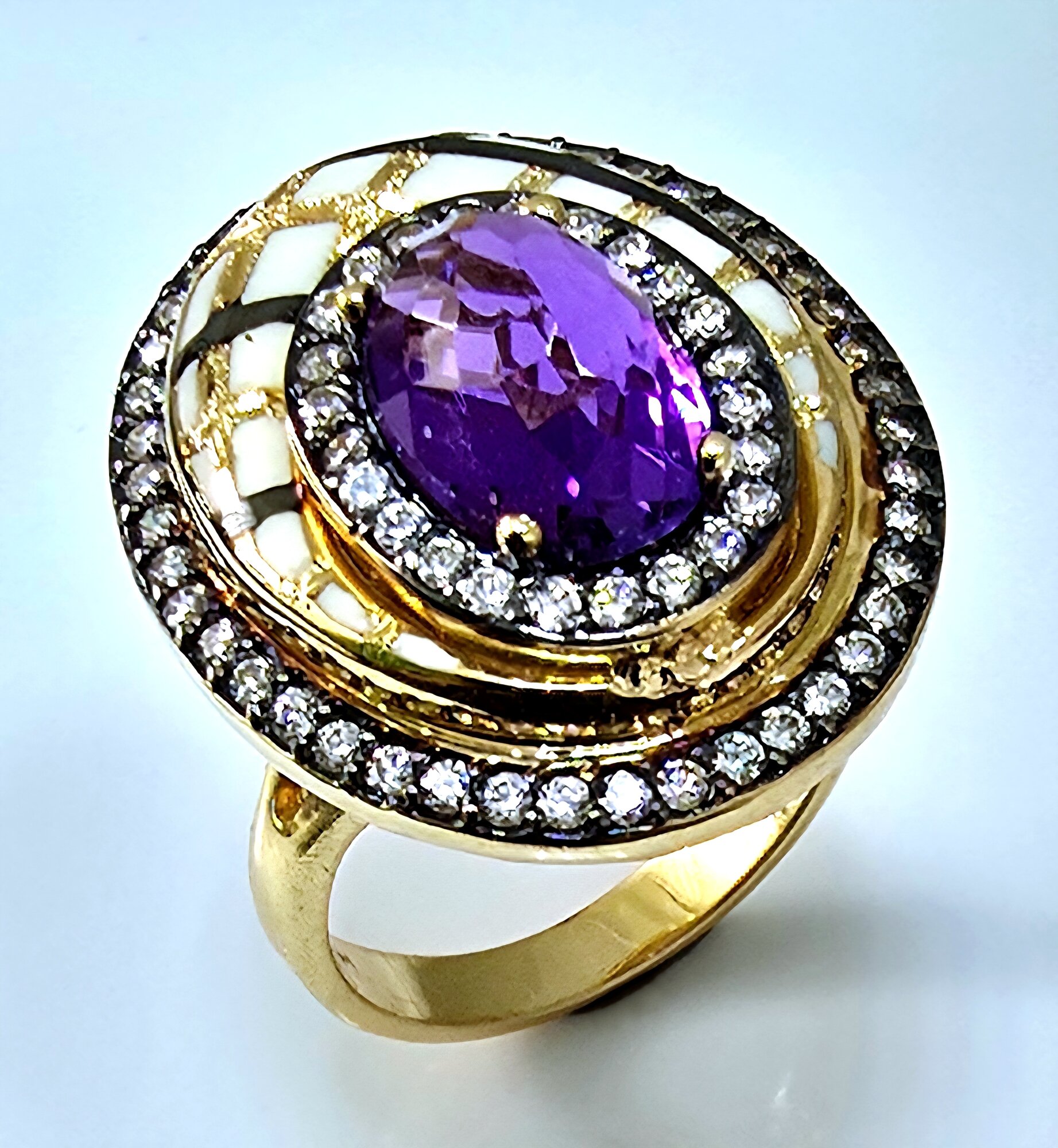 Эмаль фианит, использованная в дизайне кольца, придает ему неповторимый блеск и сияние. Этот материал отличается высокой прочностью и устойчивостью к царапинам, что обеспечивает долгий срок службы украшения.