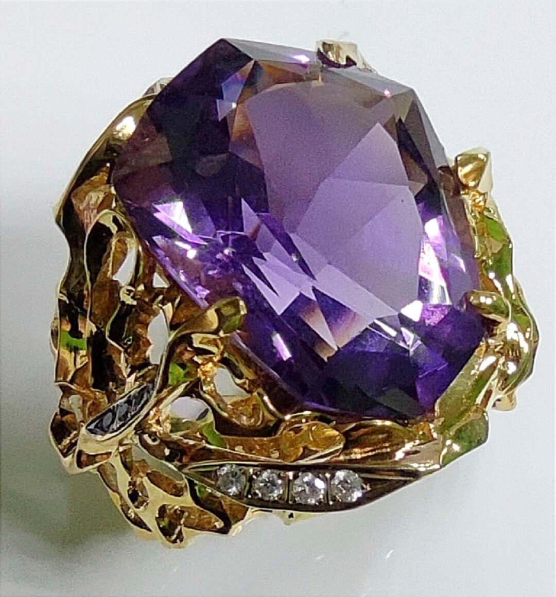 Эксклюзивное массивное кольцо из золота 750 пробы с большим, нестандартной огранки аметистом