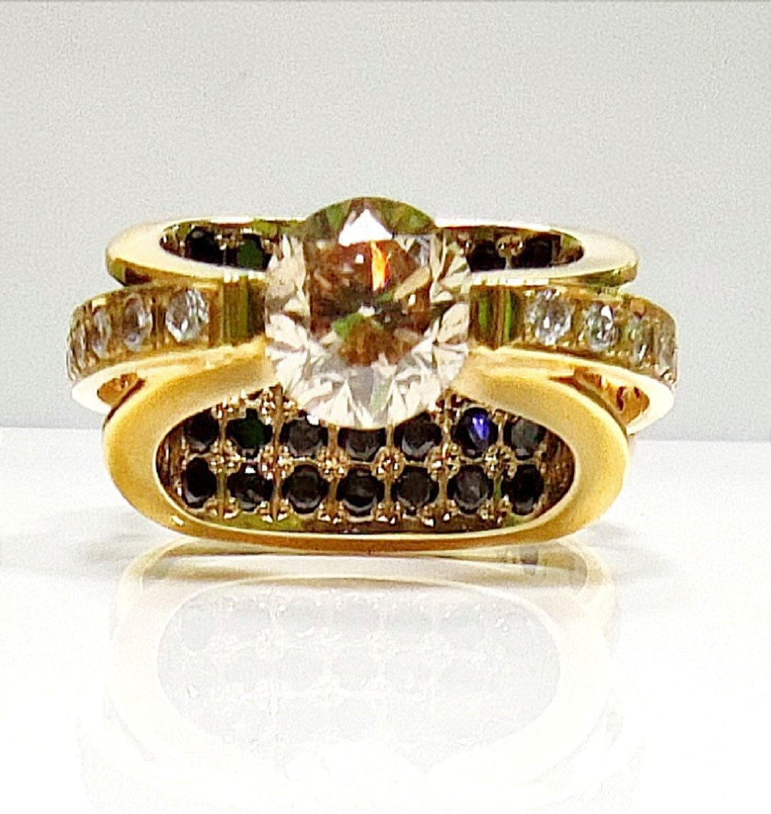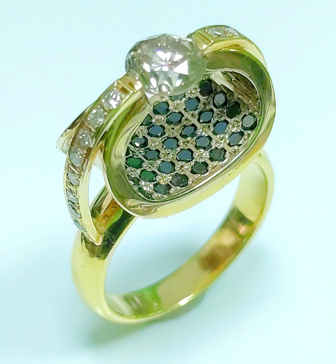 Кольцо из золота 750 пробы с каратным коньячным бриллиантом и чёрными бриллиантами в единственном экземпляре, ручная работа.