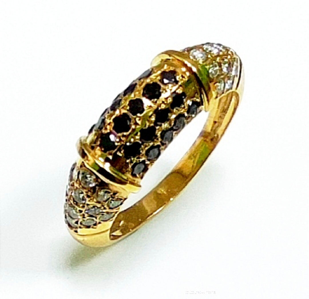 Кольцо ручной работы в единственном экземпляре. Изготовлено из золота 750 пробы с чёрными и белыми бриллиантами.