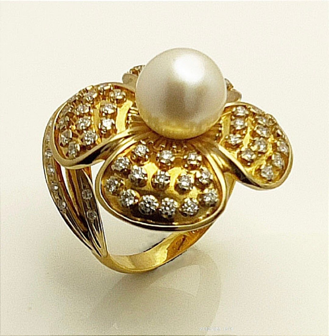 Кольцо Эстерелла золото 750, бриллианты, жемчуг
