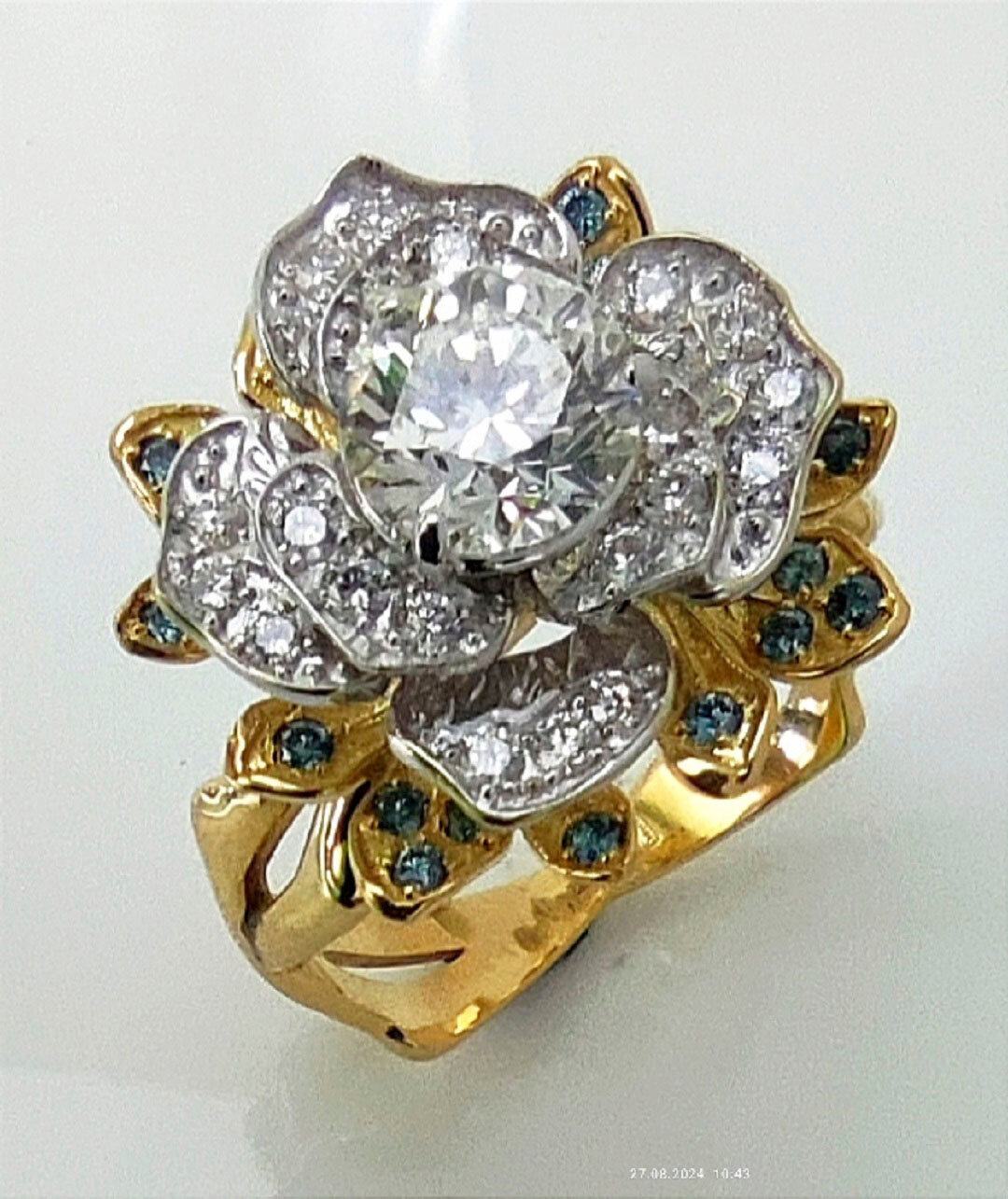 Бриллиант бесцветный, но на живой фотографии без обработки из-за игры цвета кажется зеленоватым. Нет смысла