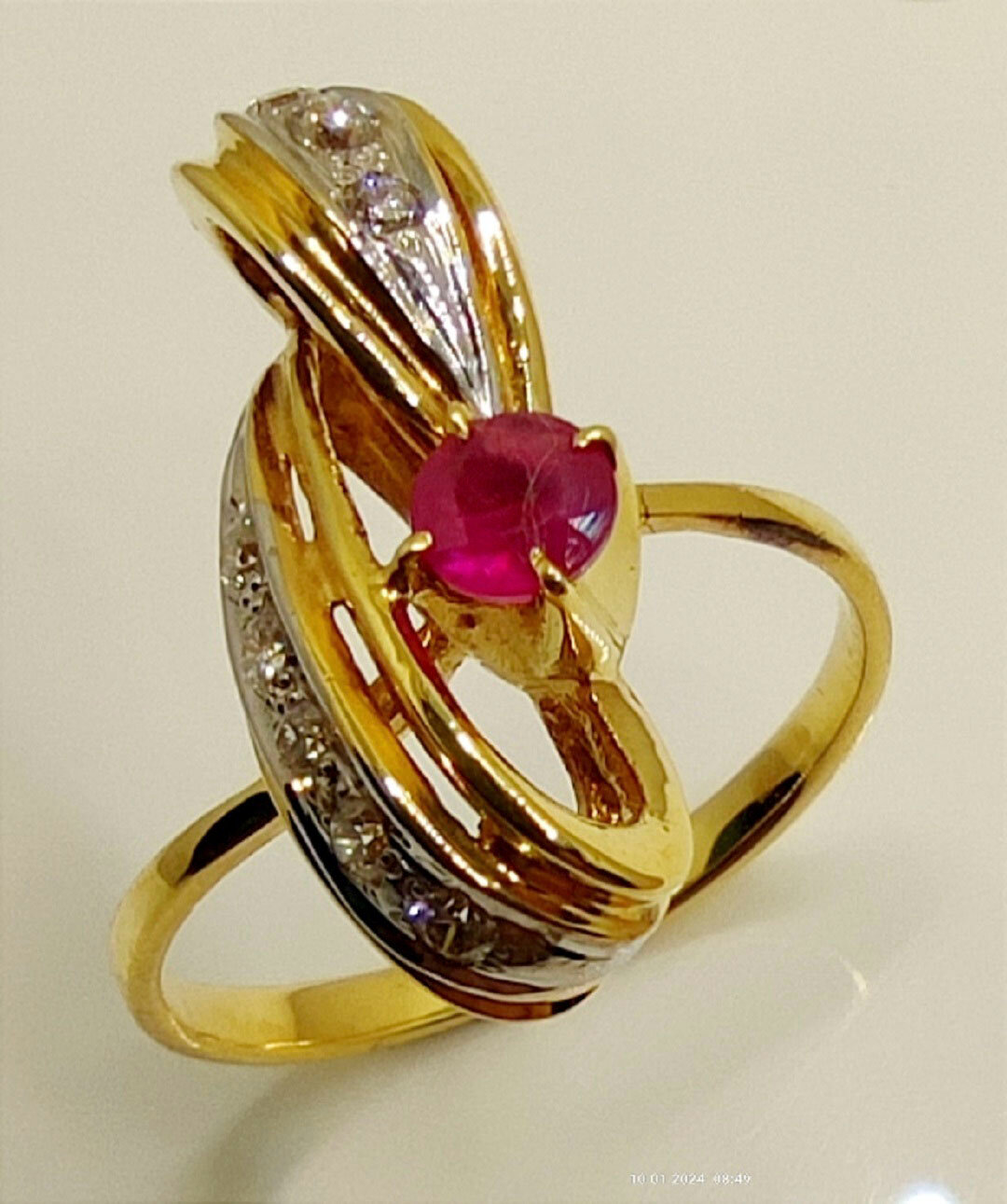 Кольцо ручной работы в единственном экземпляре. Изготовлено из высокопробного золота 750 пробы с рубином и бриллиантами.