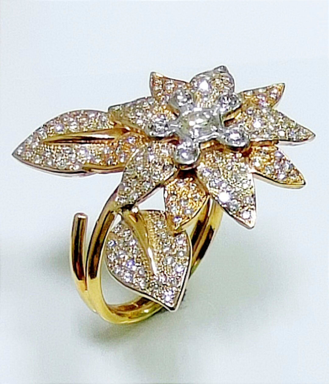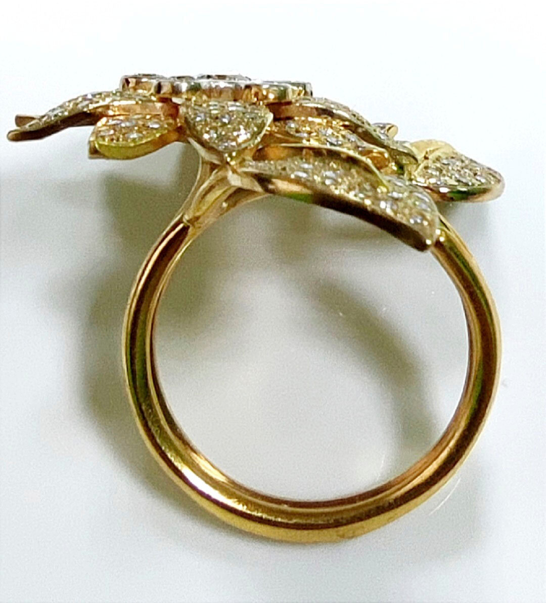 Кольцо ручной работы из жёлтого золота с бриллиантами , выполнено в единственном экземпляре.