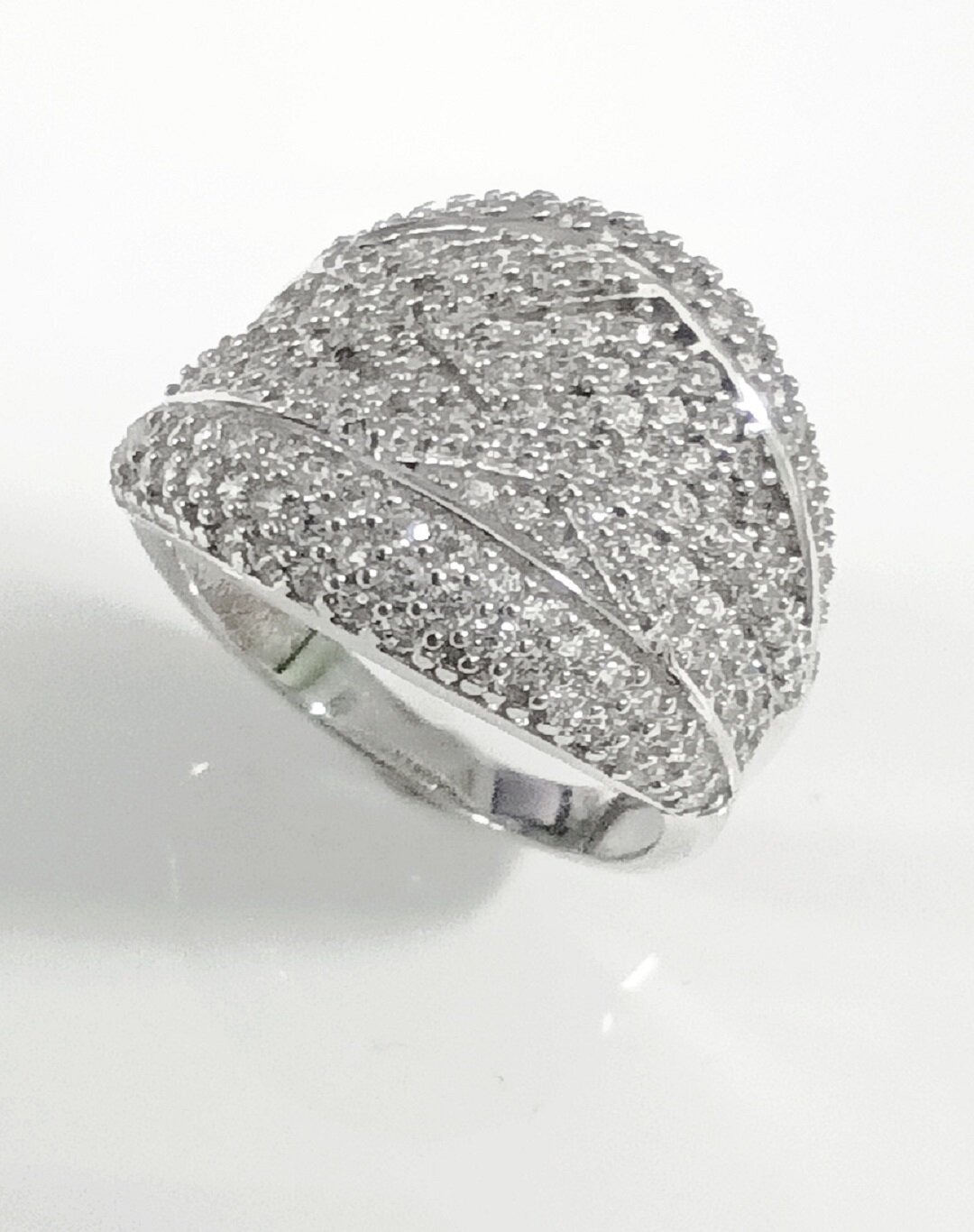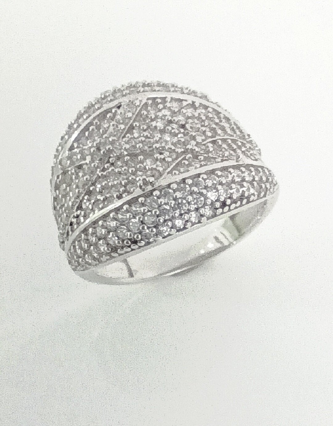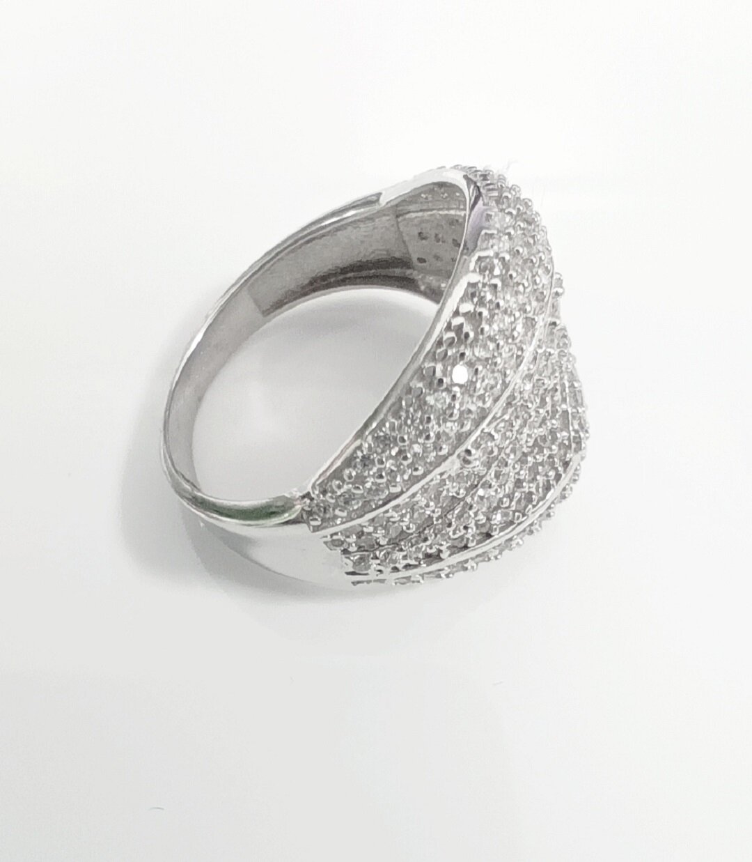 Кольцо украшено вставками из фианитов, которые представляют собой искусственный аналог бриллианта. Фианиты обладают рядом преимуществ: они чисты, прозрачны и играют на солнце, как драгоценные камни, что позволяет создавать настоящие ювелирные шедевры.