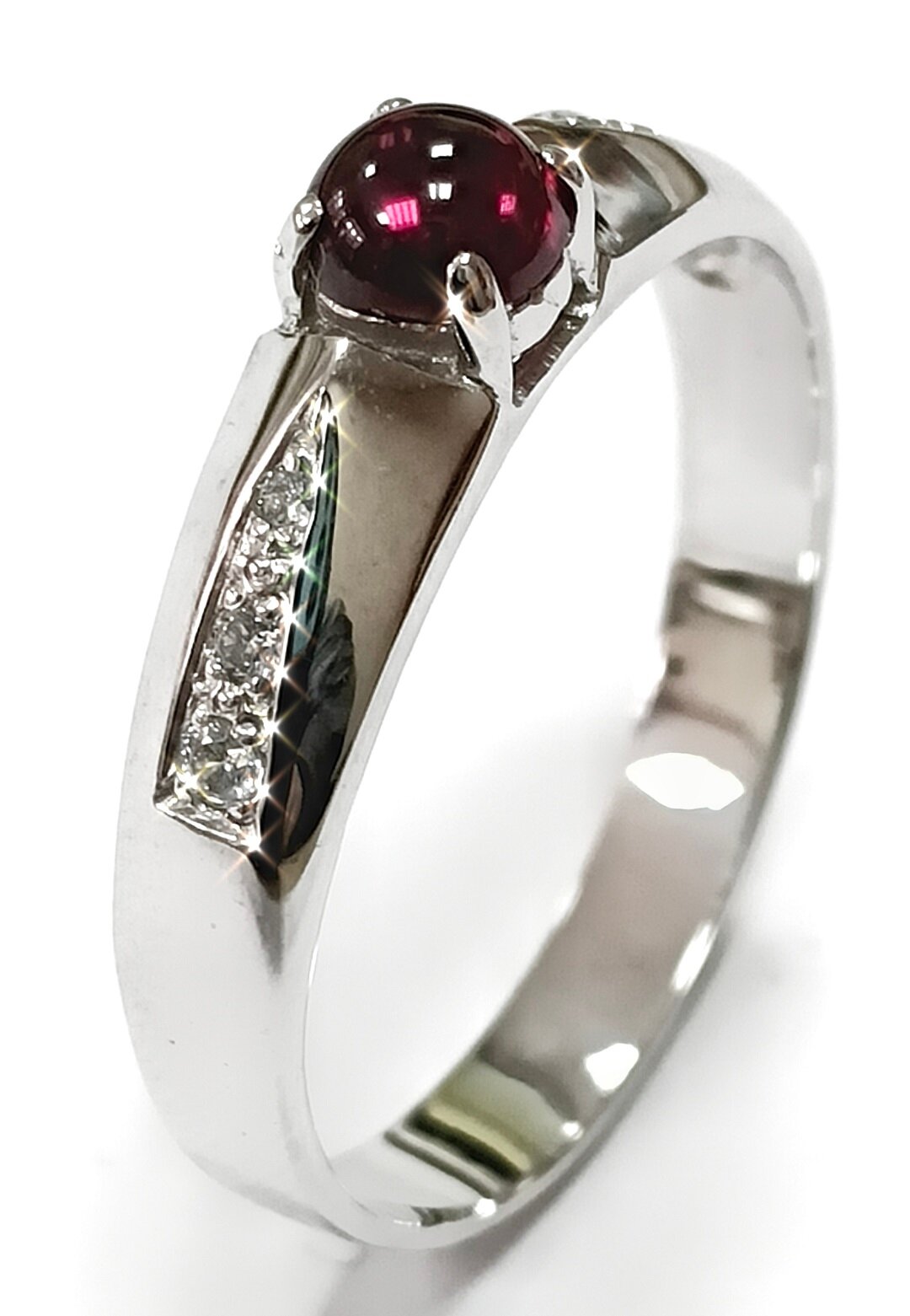 Вставка из граната придает кольцу особый шарм и глубину, делая его привлекательным для любителей натуральных камней. Фианиты, в свою очередь, добавляют блеск и сияние, делая украшение еще более привлекательным.