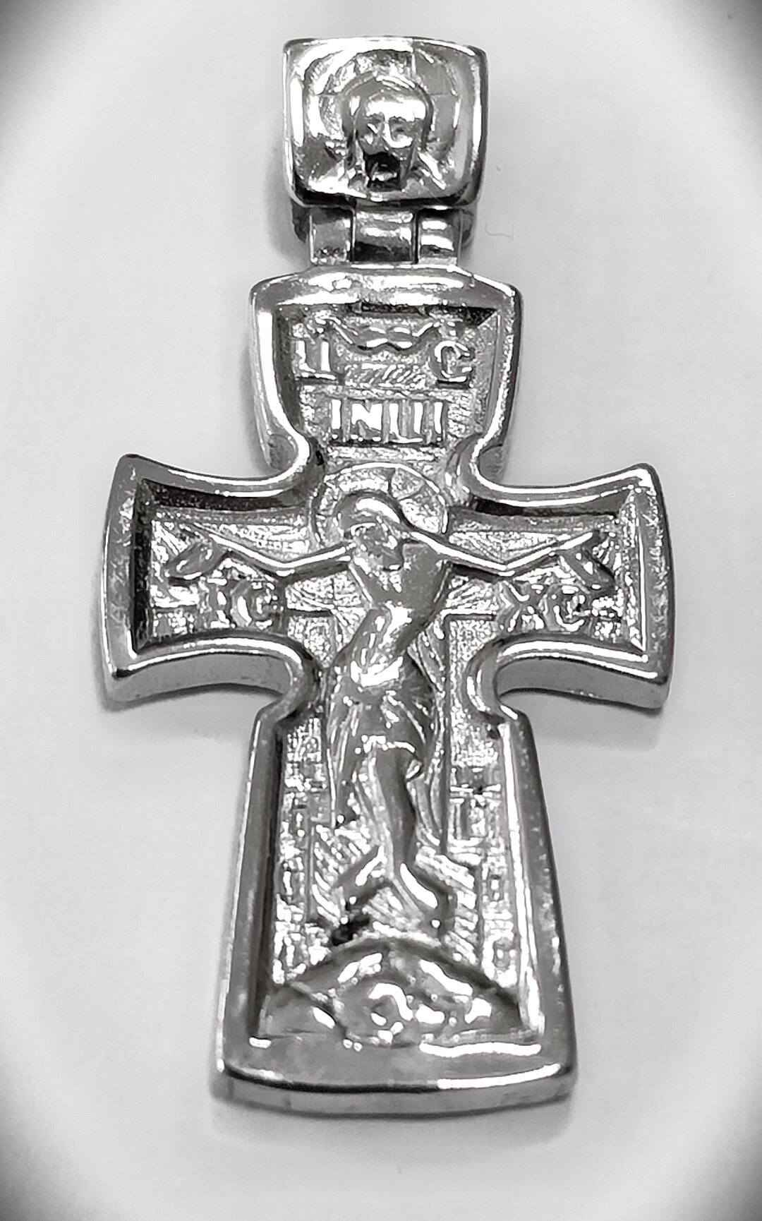 Изготовлен из серебра 925 пробы, что гарантирует высокое качество и долговечность изделия. Средний вес креста составляет 4.38 грамма, что делает его легким и комфортным для ношения.