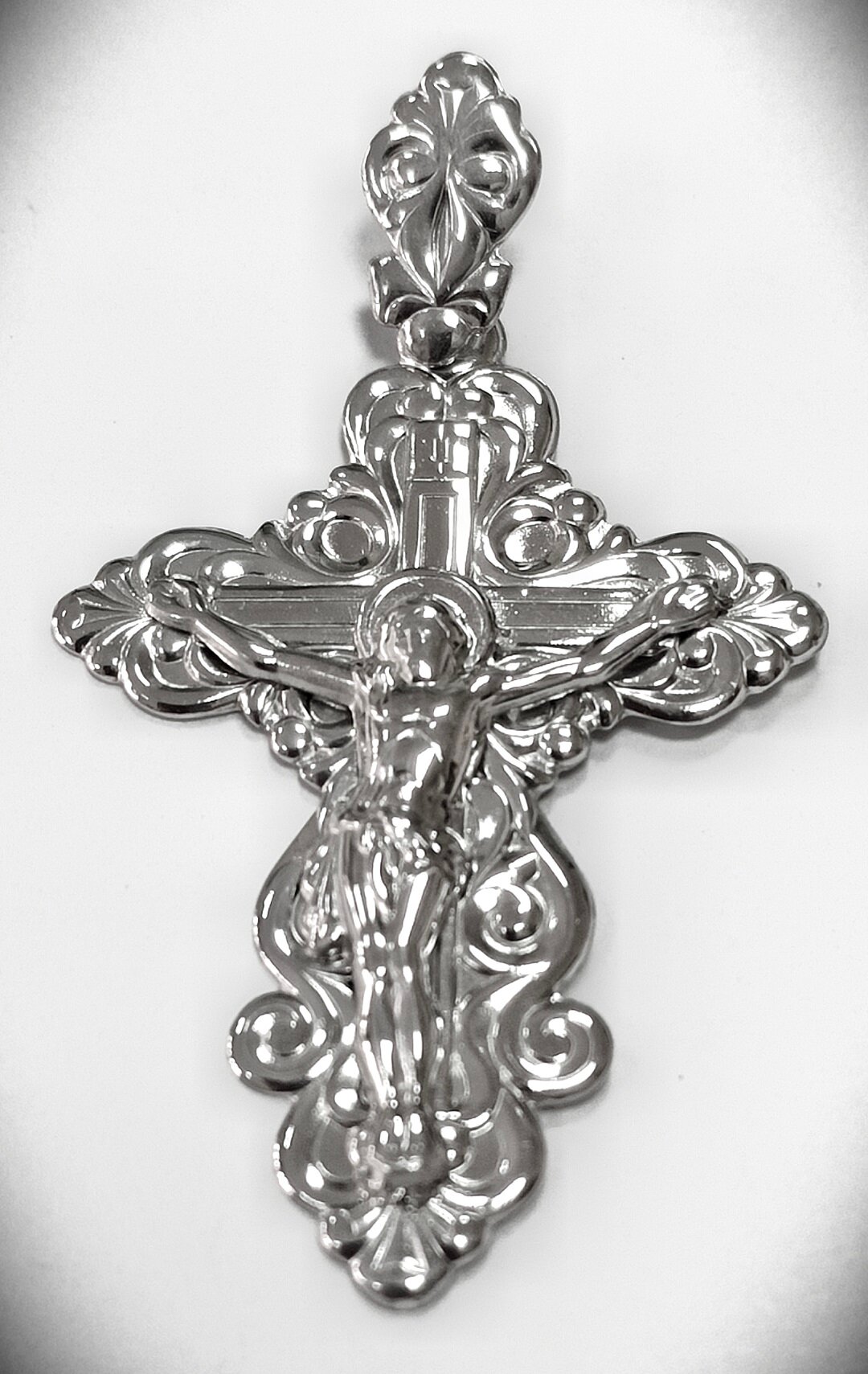 Крест Эстерелла выполнен из серебра 925 пробы, что гарантирует его долговечность и сохранность внешнего вида на протяжении долгого времени. Средний вес изделия составляет 2.46 грамма, что делает его легким и комфортным для ношения.