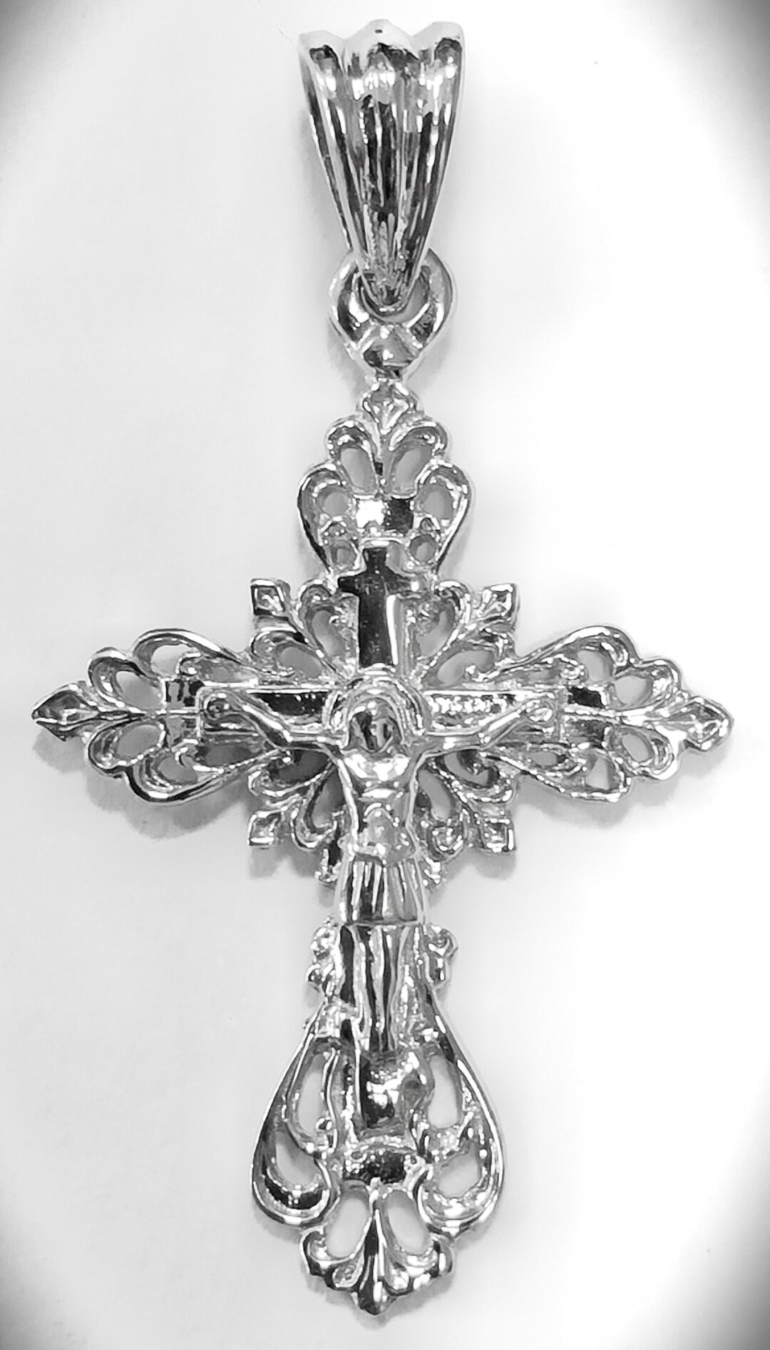 Подвеска "Крест" выполнена в ажурном стиле, что делает ее легкой и воздушной.