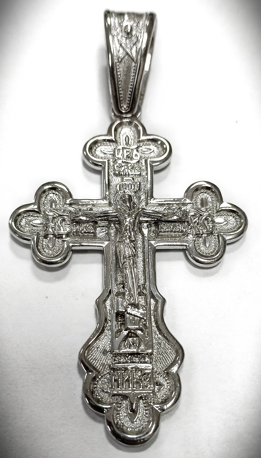 Отделка креста - родирование, что придает ему блеск и защищает от царапин и потертостей.