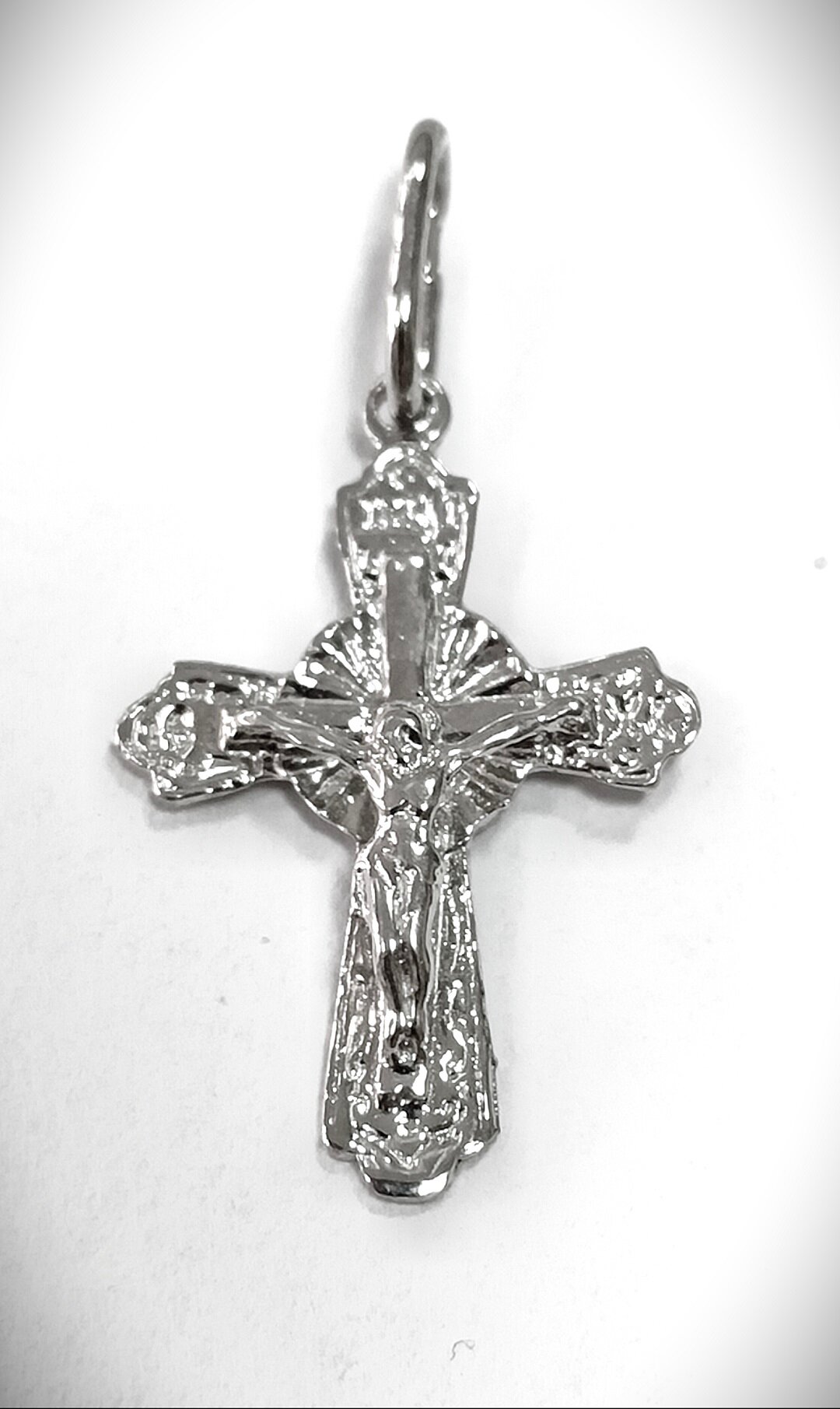 Особенностью этого креста является его отделка родием. Родирование придает украшению блеск и защищает его от царапин и потускнения, что позволяет сохранить первоначальный вид на долгое время.