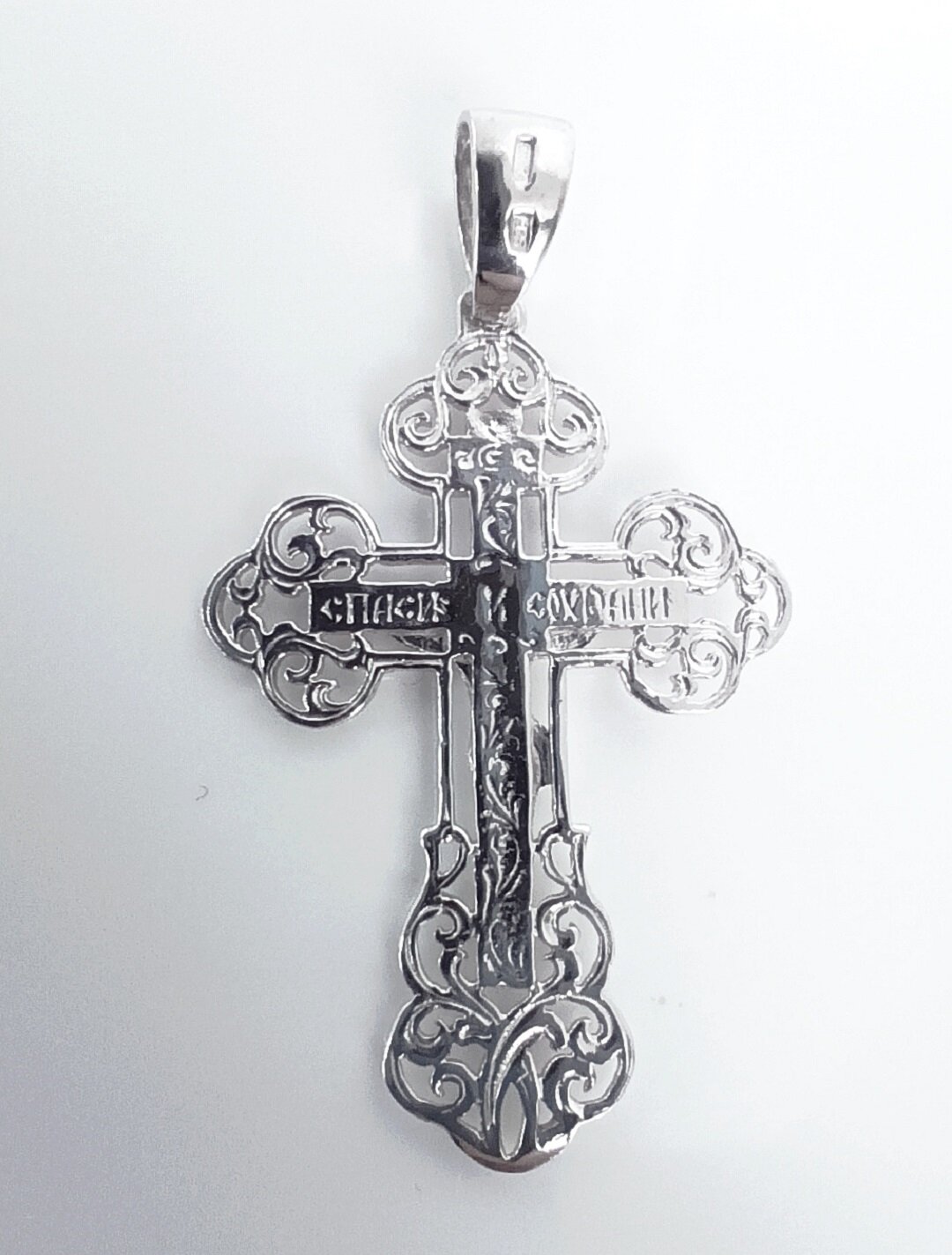 Изготовленный из серебра 925 пробы, этот крест обладает высокой прочностью и долговечностью.