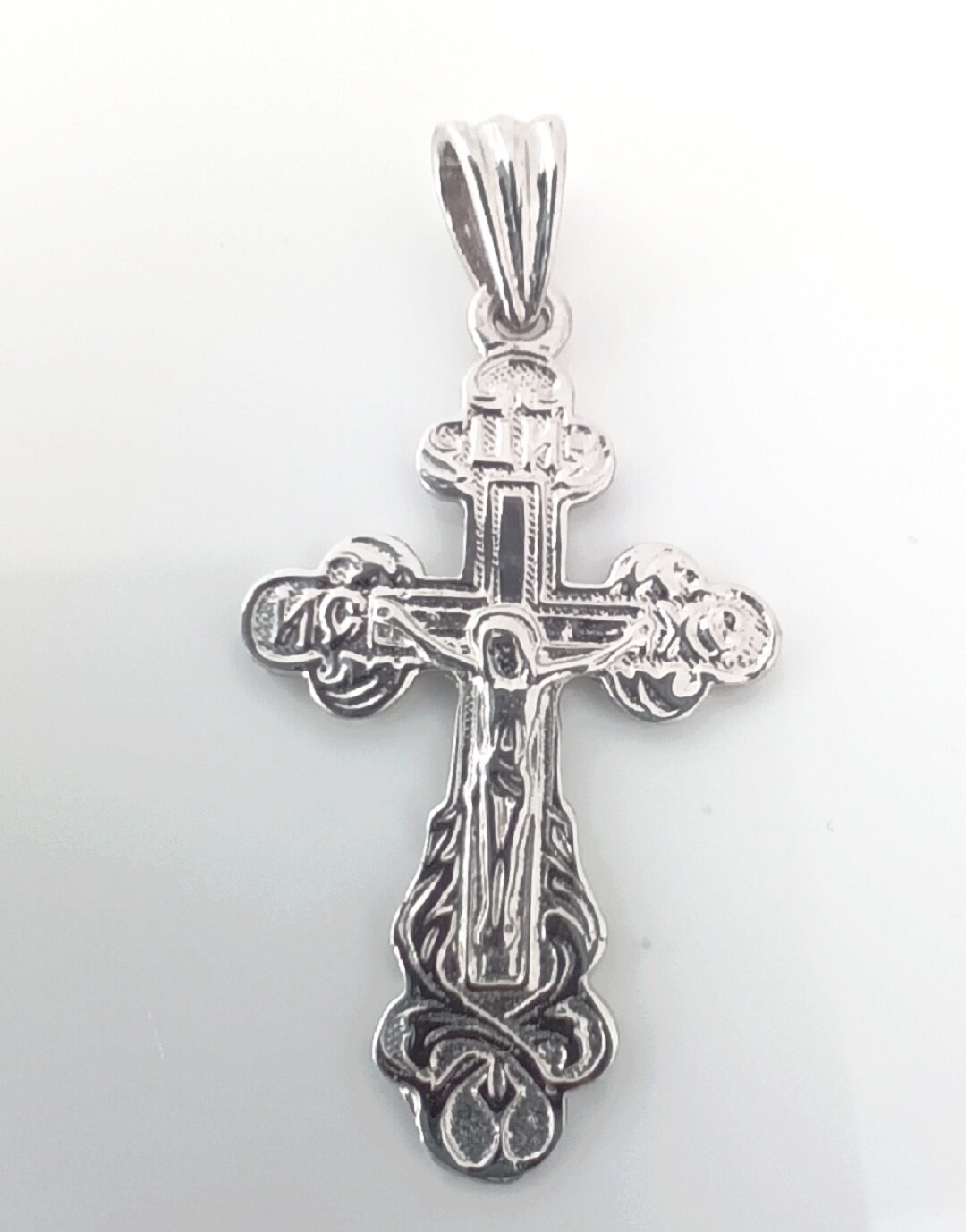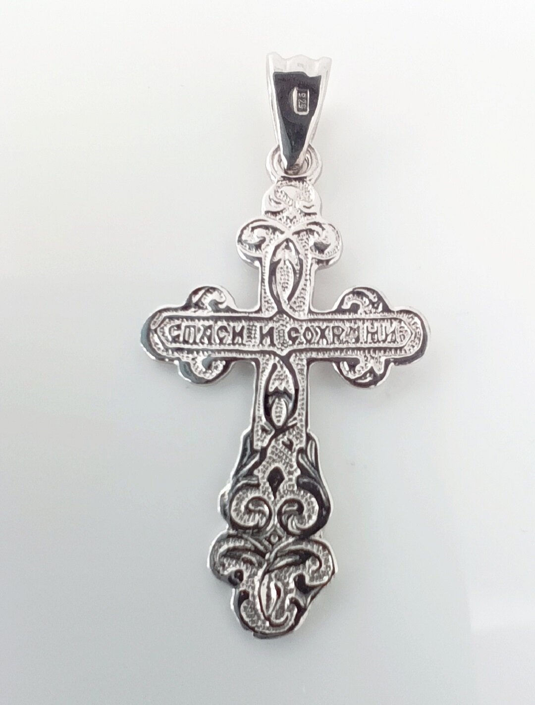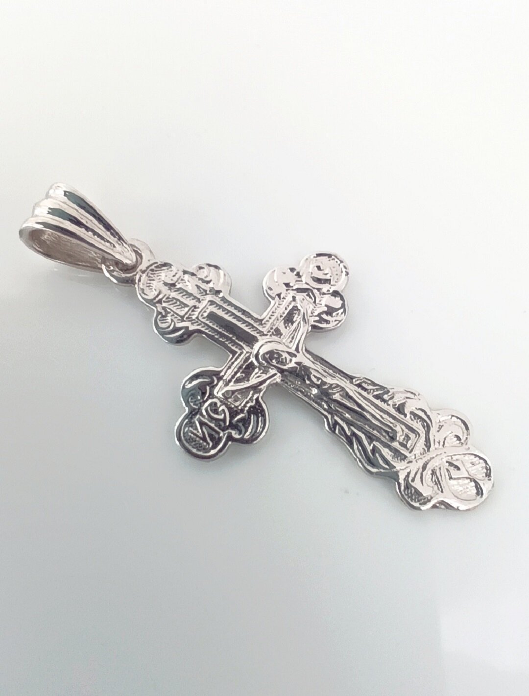 Особенностью этого крестика является его отделка родированием, которая придает изделию блеск и защищает его от царапин и потертостей.