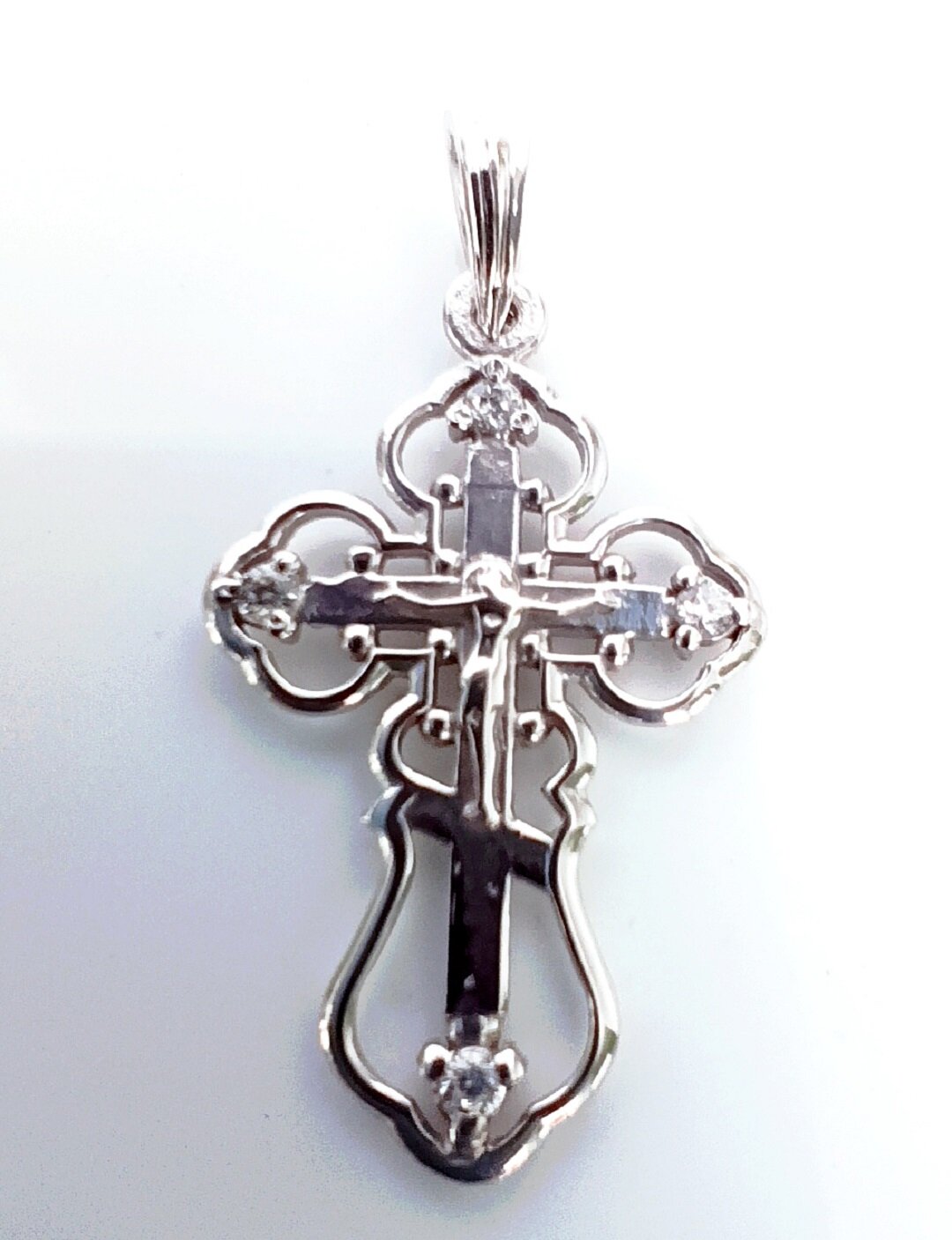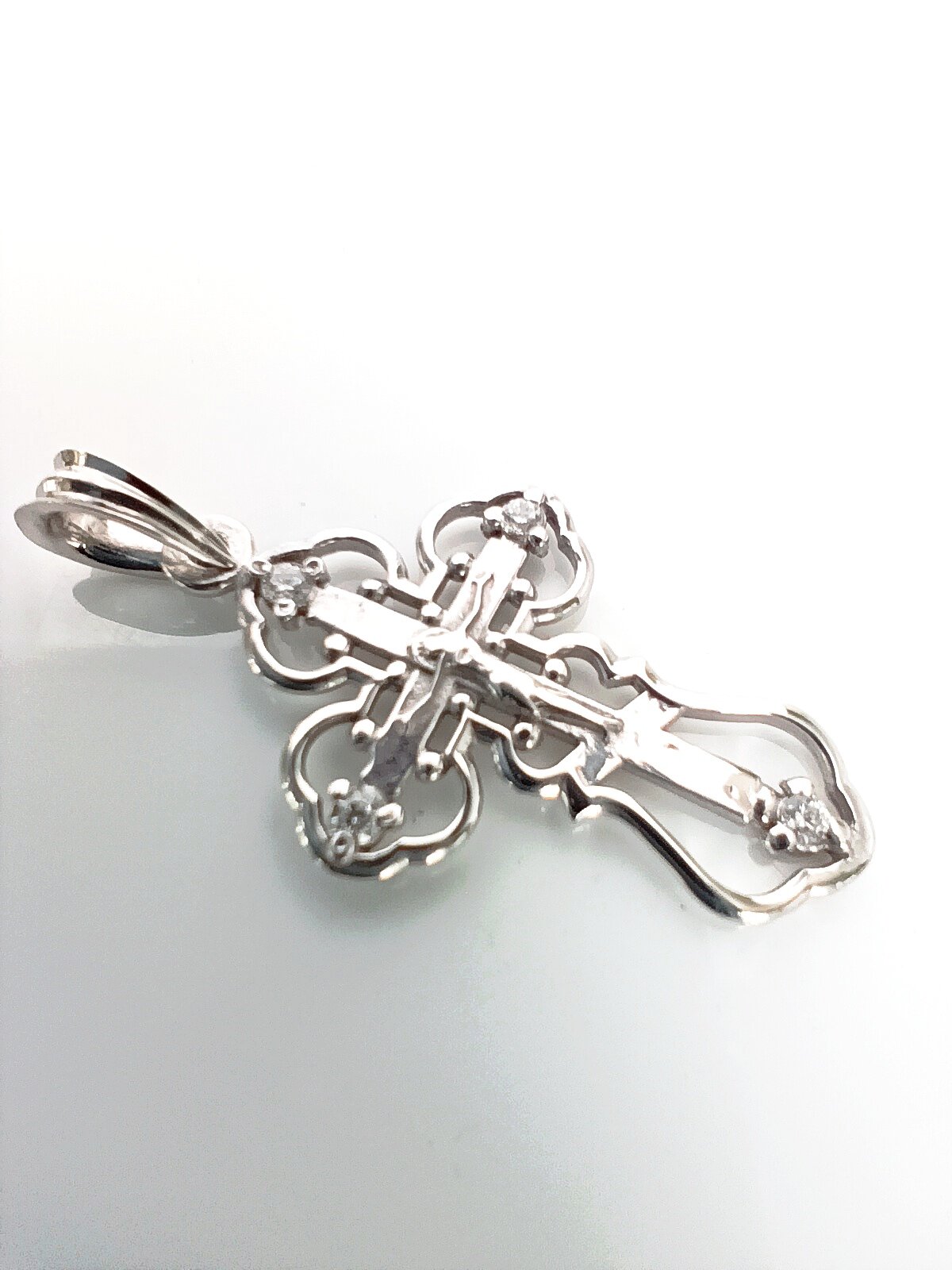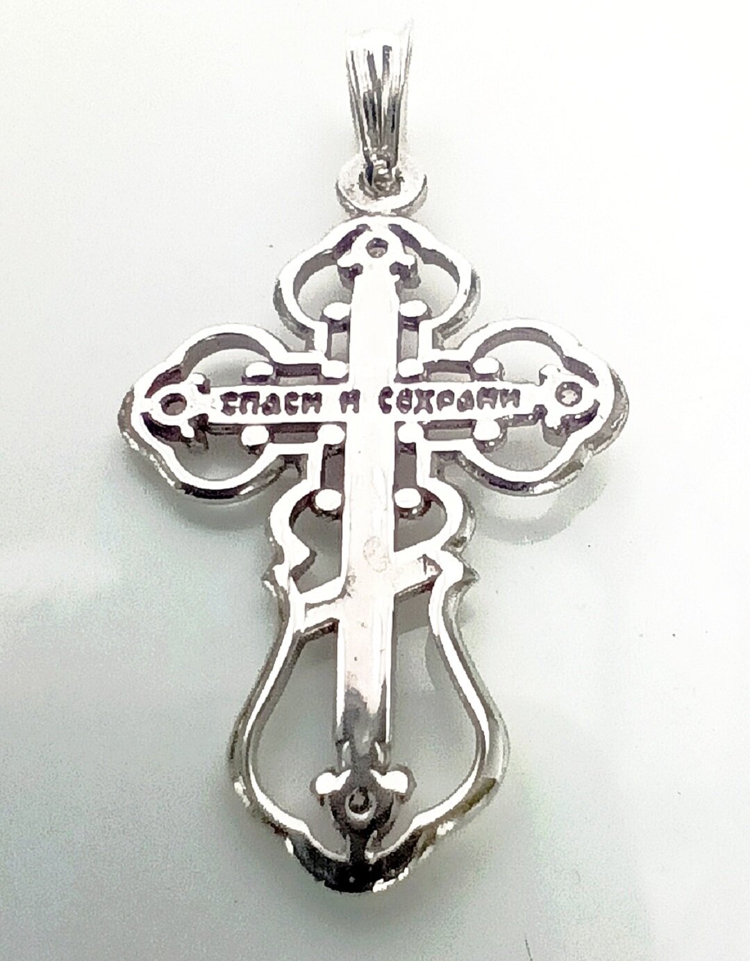 Этот крестик изготовлен из серебра 925 пробы и покрыт родием, что делает его очень долговечным и красивым.