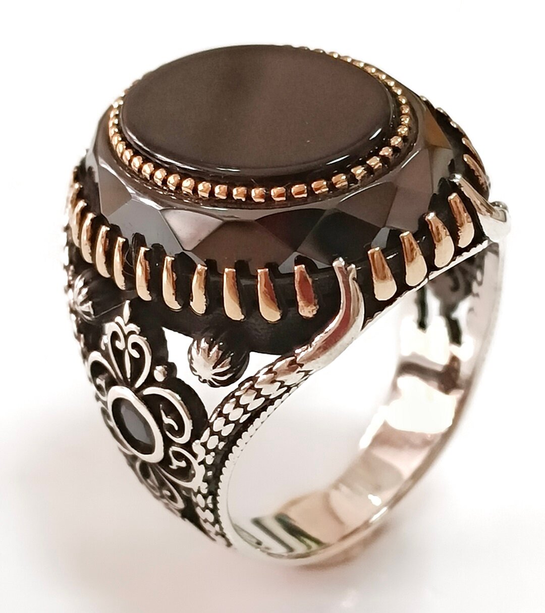 Кольцо выполнено из серебра 925 пробы, что гарантирует его высокое качество и долговечность. Средний вес изделия составляет 15.98 грамм, что делает его достаточно тяжелым, чтобы подчеркнуть ваш статус и вкус.