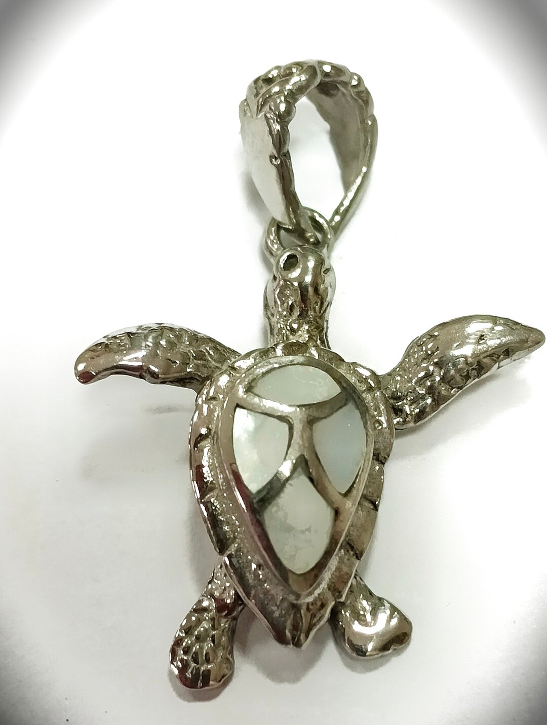 Украшение выполнено в виде черепахи, что делает его уникальным и запоминающимся. Вставки из перламутра и фианита добавляют блеск и сияние, делая подвеску еще более привлекательной.