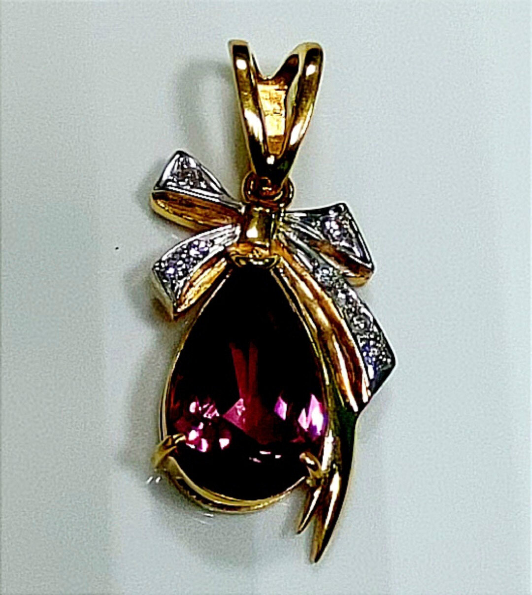 Подвес ручной работы в единственном экземпляре из золота 750 с турмалином и бриллиантами.