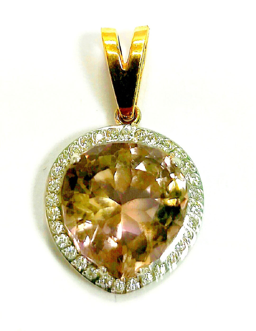 Подвеска ручной работы в единственном экземпляре. Изготовлена из высокопробного золота 750 пробы. Аметрин обрамлён бриллиантами.